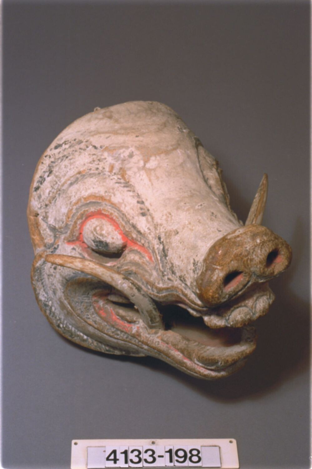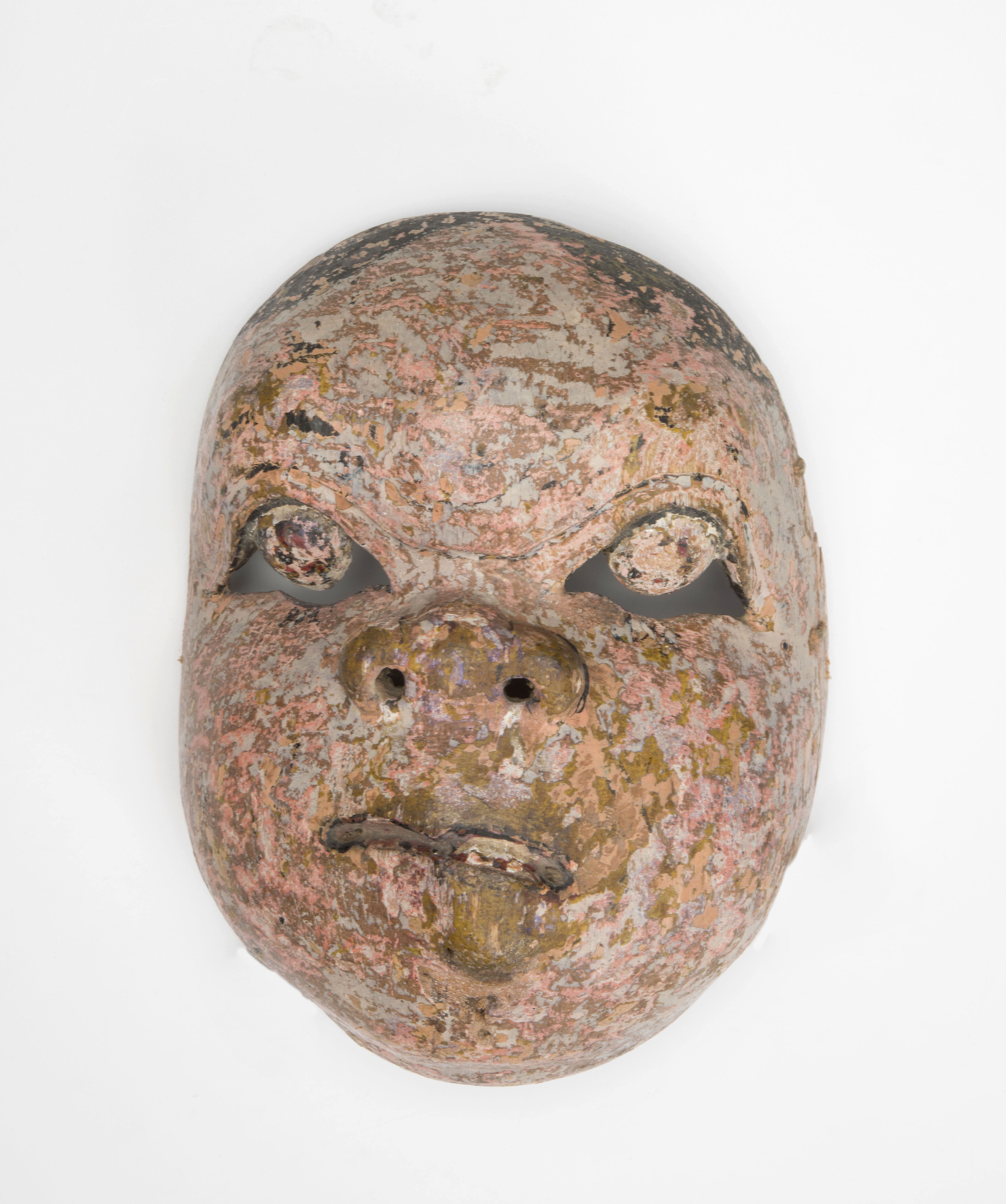 Houten masker, vermoedelijk voorstellende een demoni...