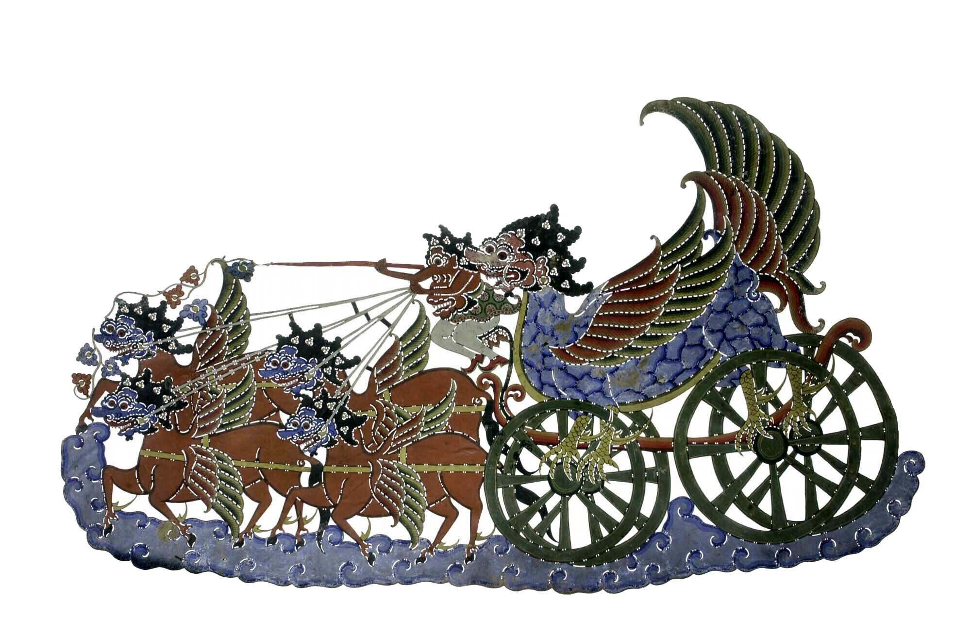 Wayang purwafiguur goden koets getrokken door 4 gevl...