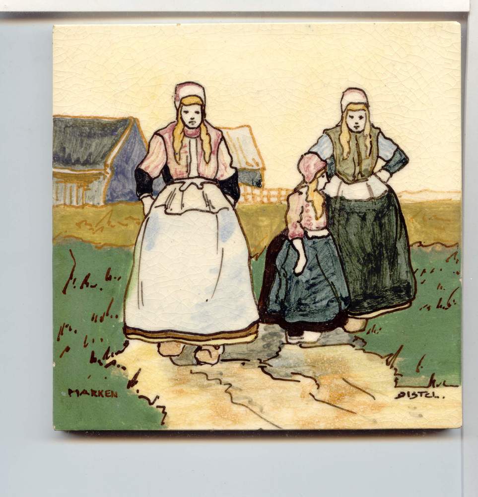 tegel van keramiek in onderglazuur, met voorstelling...