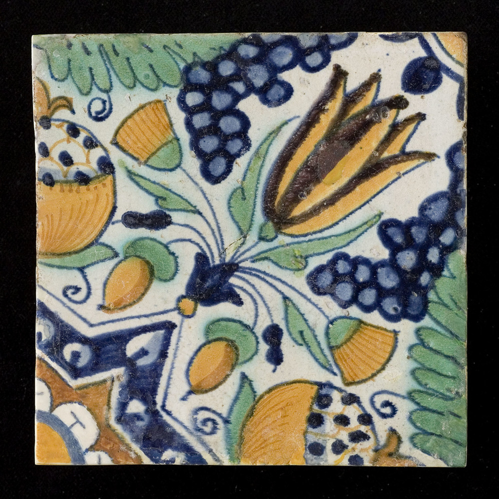 Tegel van keramiek met tinglazuur, voorstellende: or...