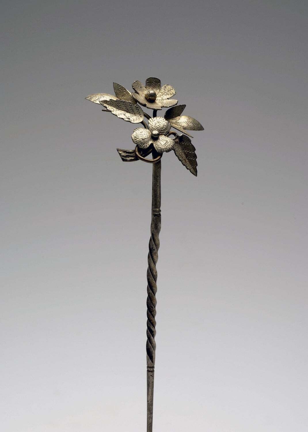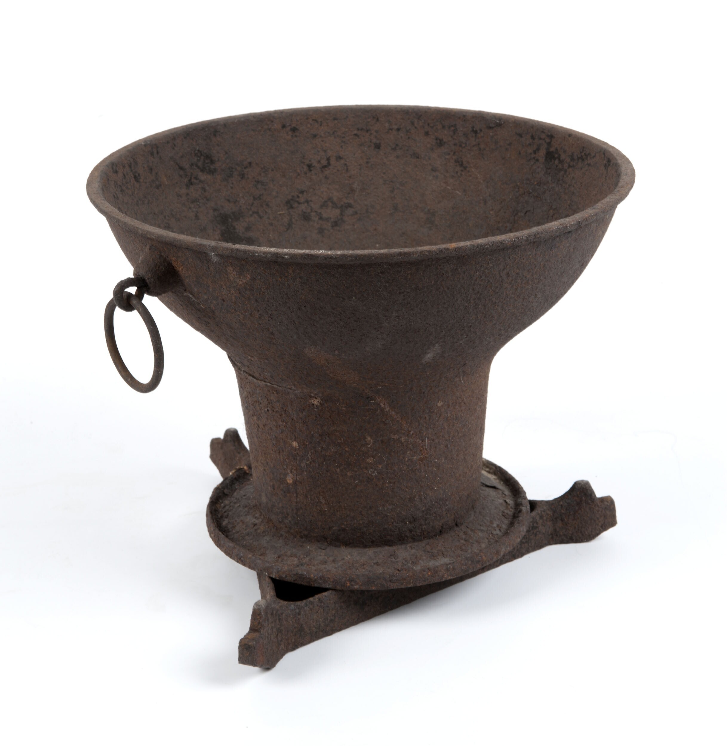 IJzeren komfoor (a) met (potsteun van ijzer b)