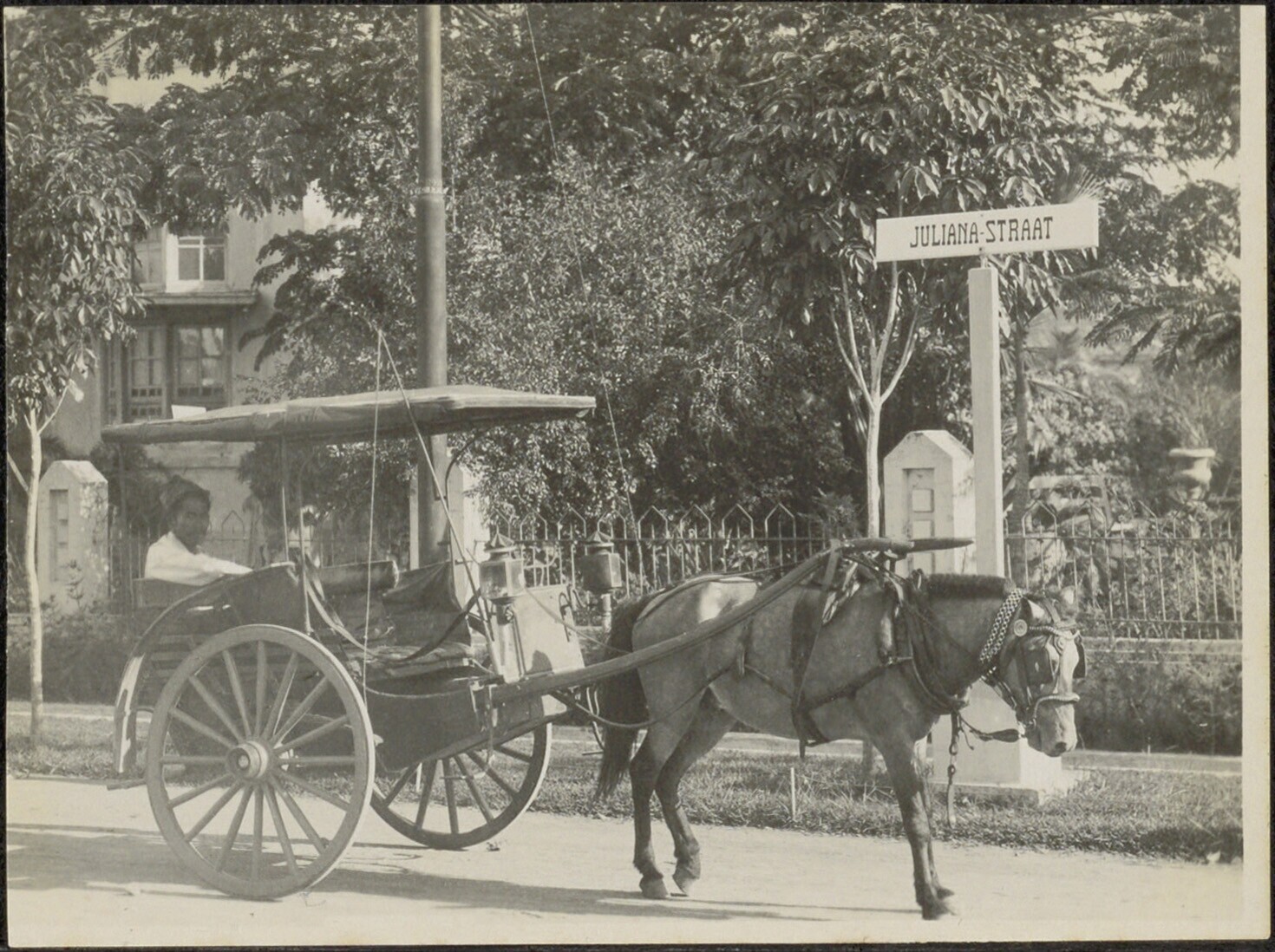 Man in een paardenkoets in de Julianastraat