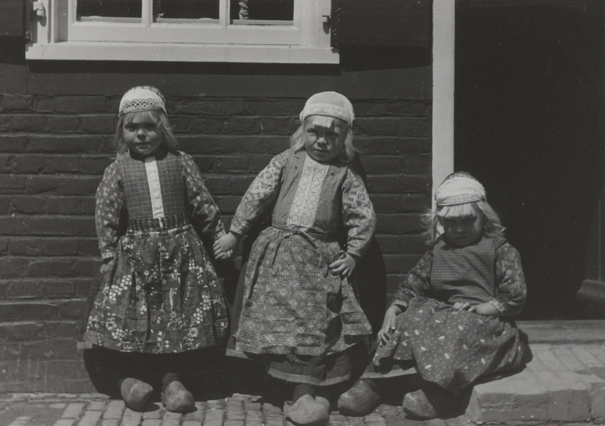 Drie jongetjes in Marker streekdracht, 1943 (zwart-w...