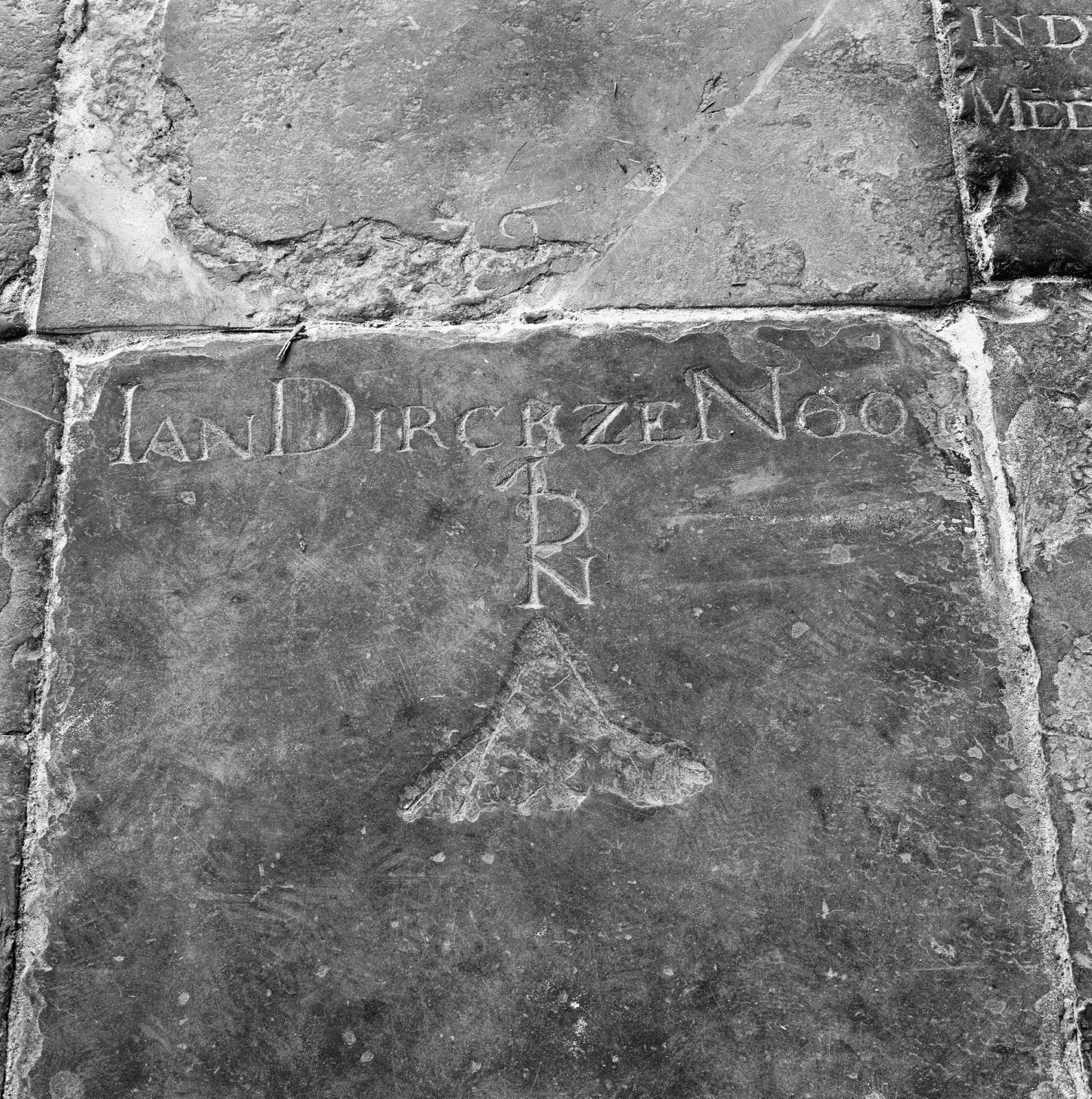 Interieur, grafzerk in de vloer van de Hervormde kerk