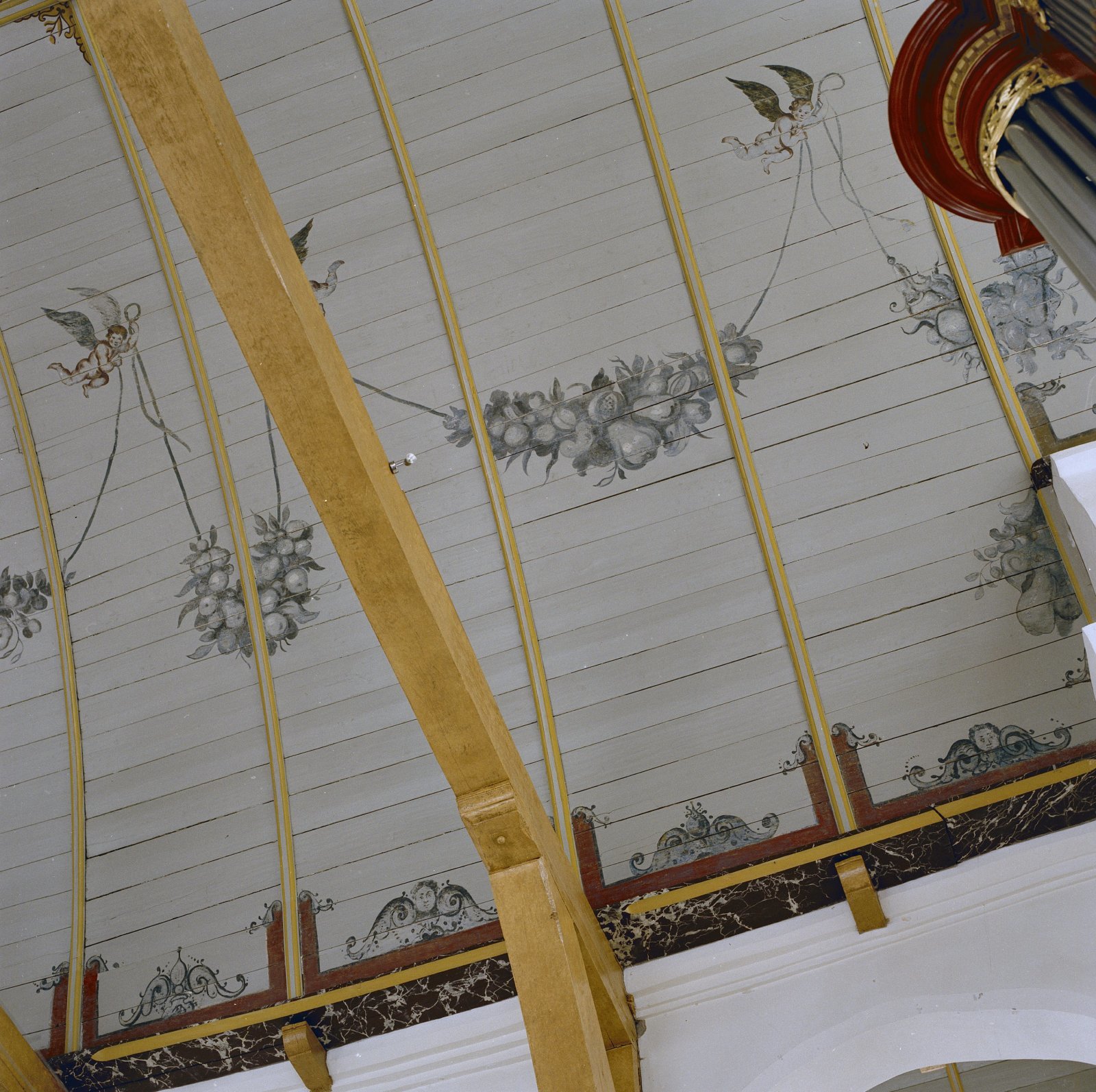 Interieur, gewelfschilderingen, detail