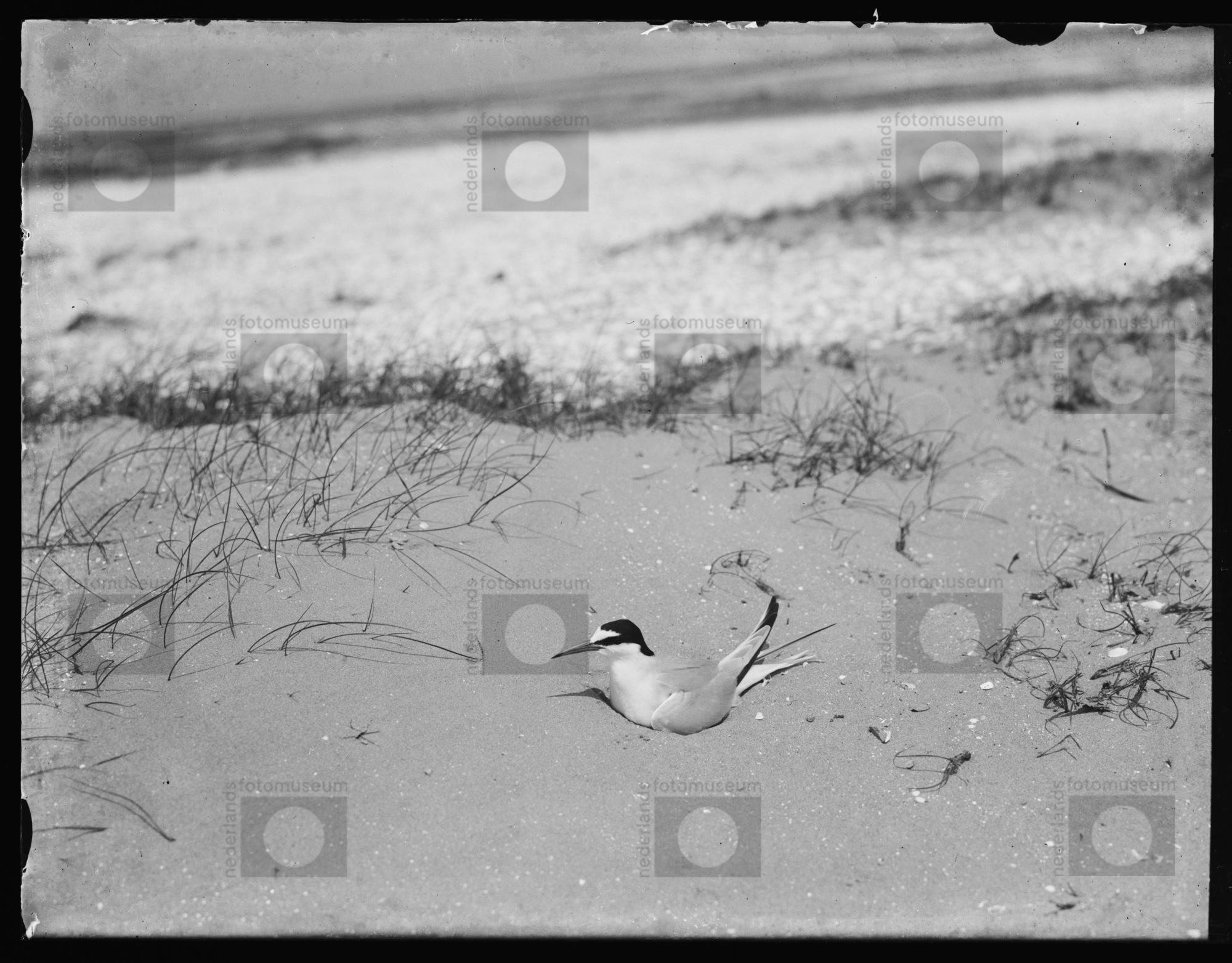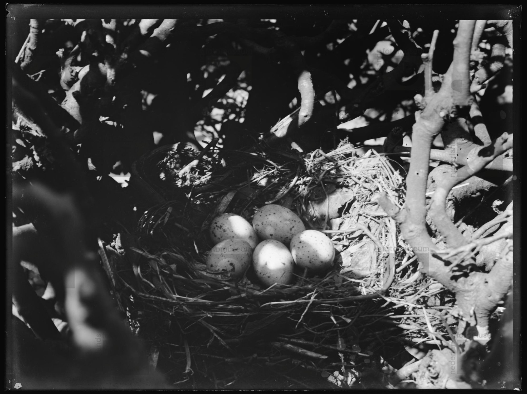 Griel bij nest met eieren, Zandvoort (1909). reprodu...