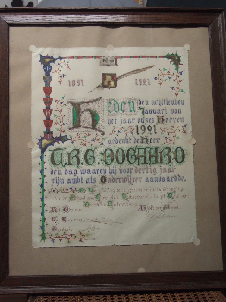 Getuigschrift in lijst.