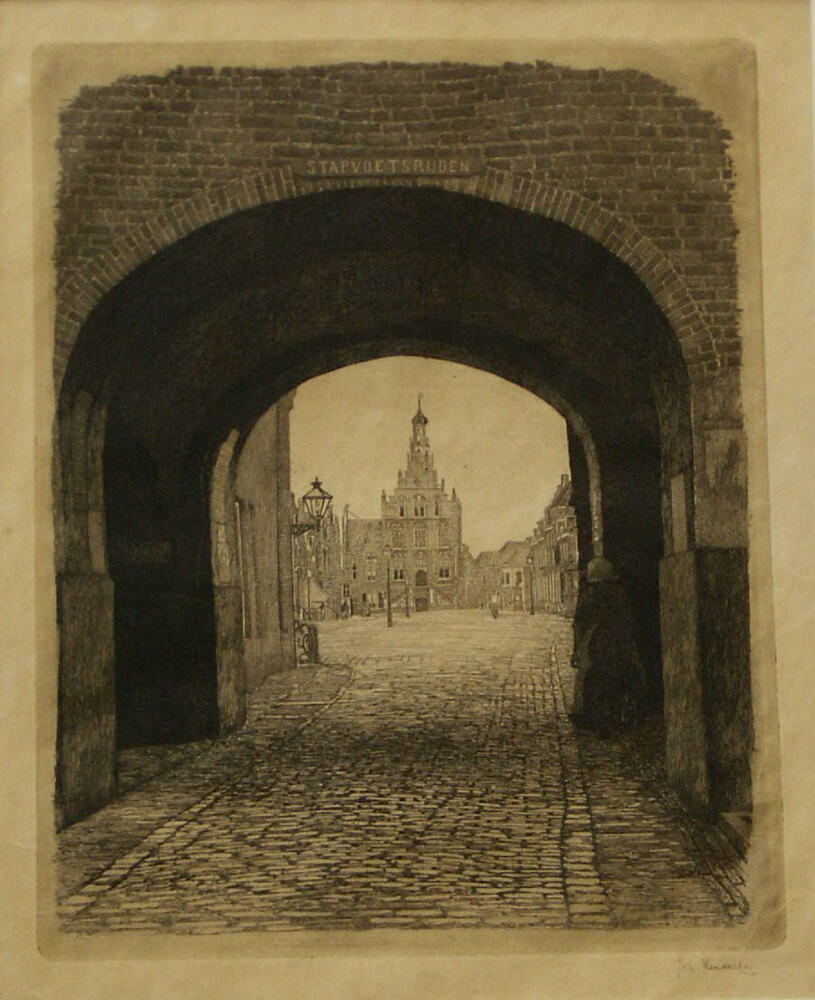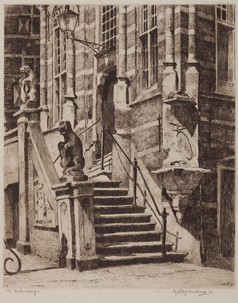 Ets, voorstellende de trap en de kaak van het stadhu...