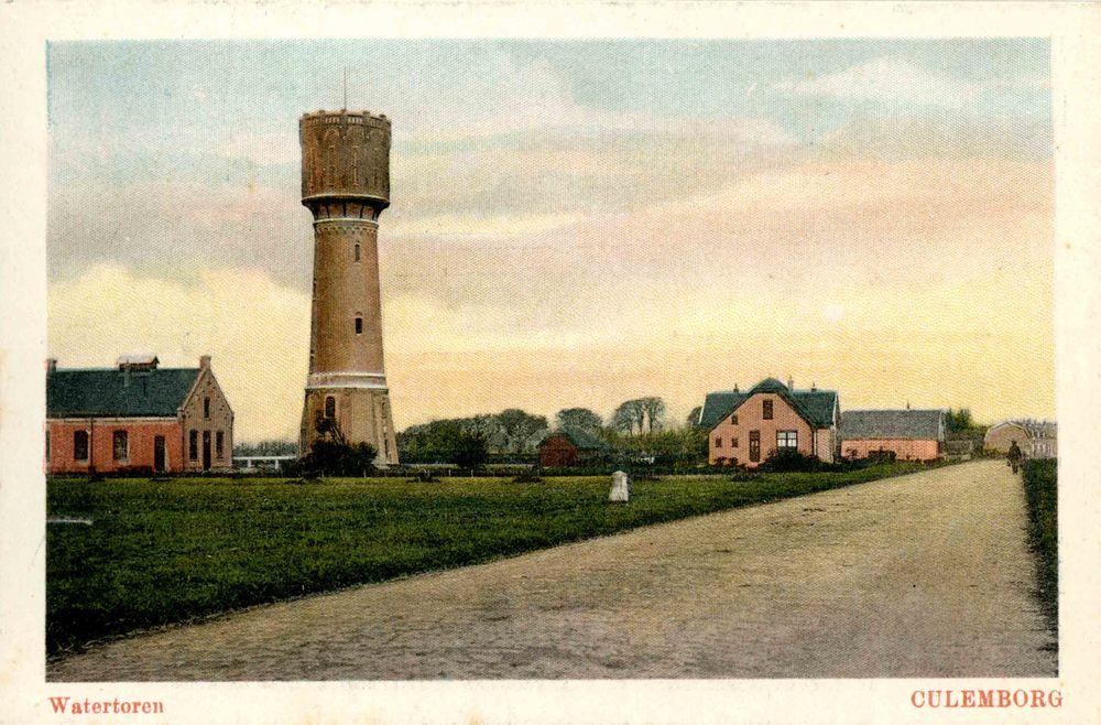 Ansichtkaart, voorstellende de watertoren aan de Rij...