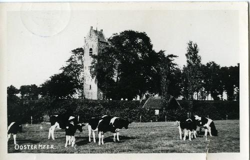 Prentbriefkaart van koeien in de wei naast een kopro...