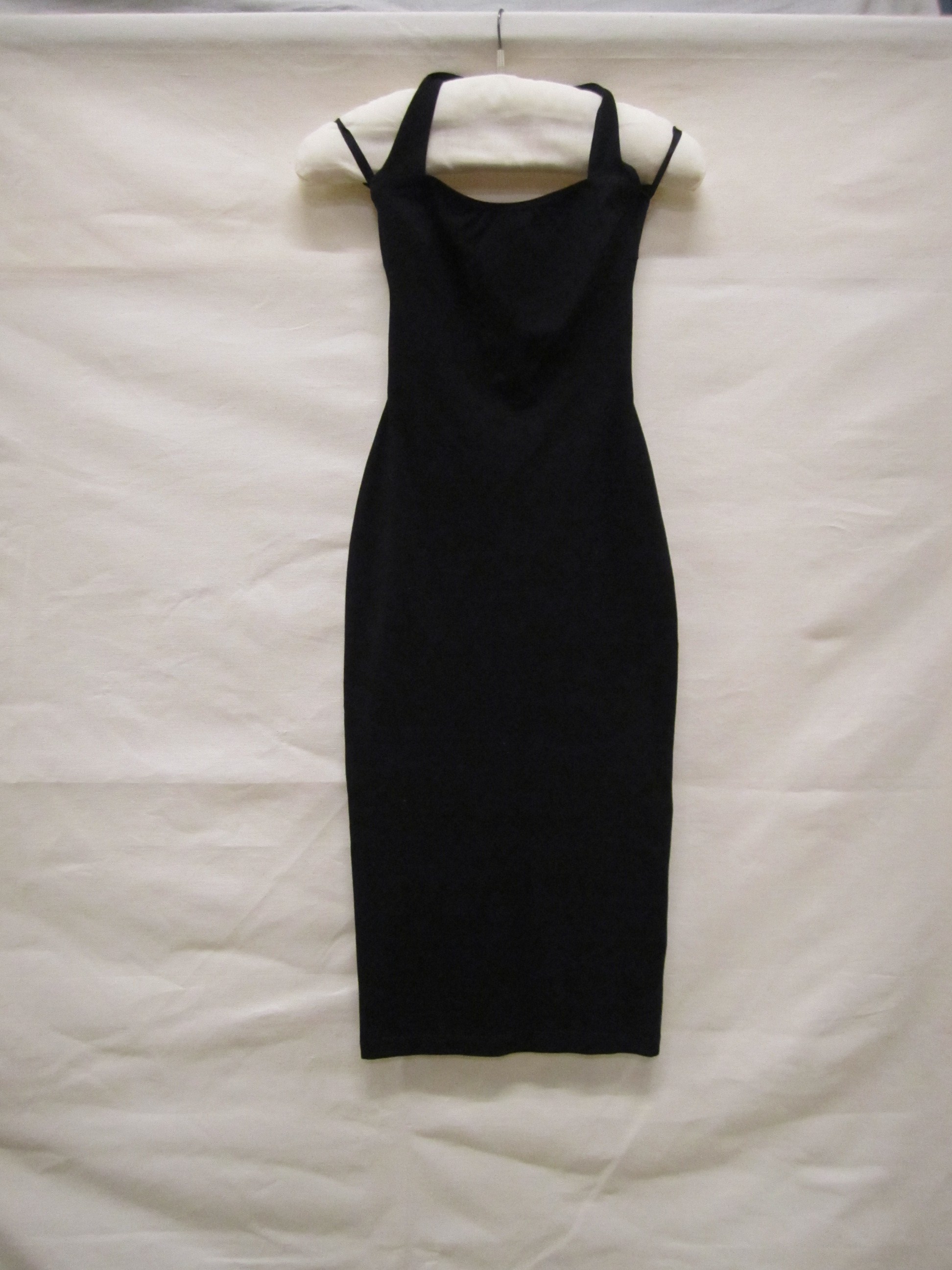 Mini-jurk van zwart fluweel. Model met halterlijn, g...