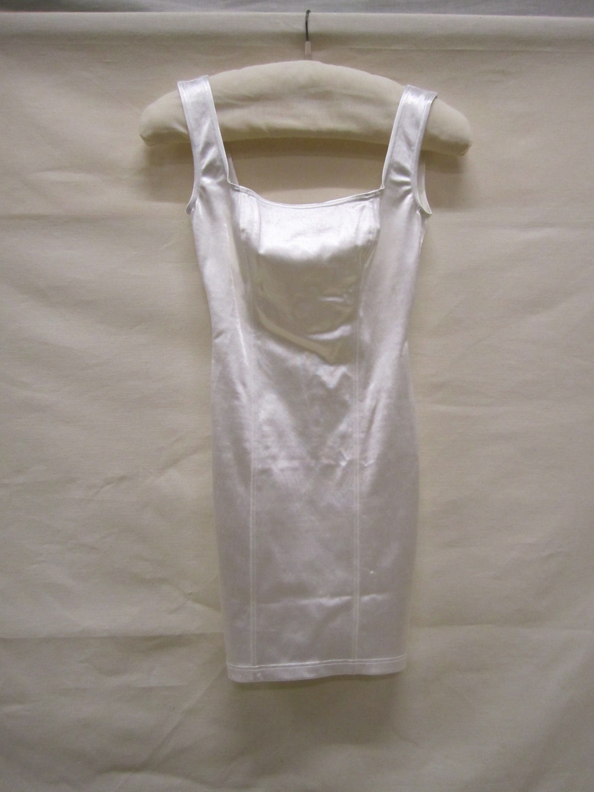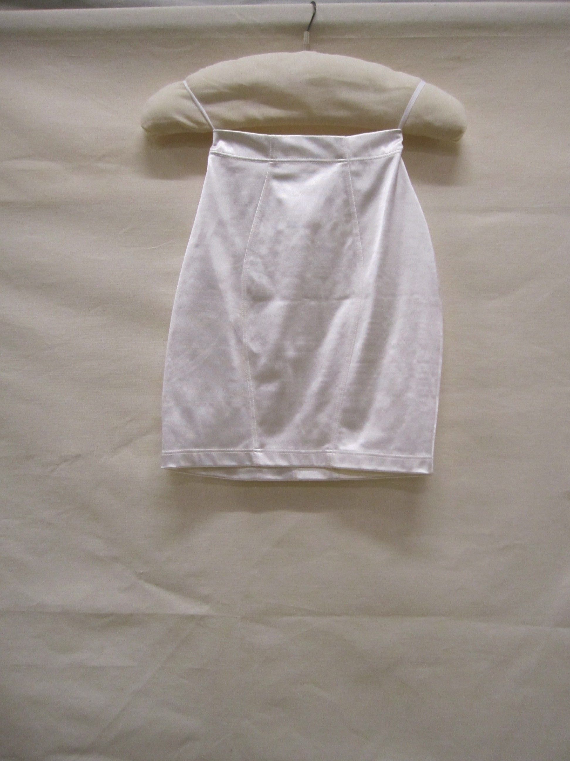 Rok van witte, satijnachtige stof. Kort, strak model...