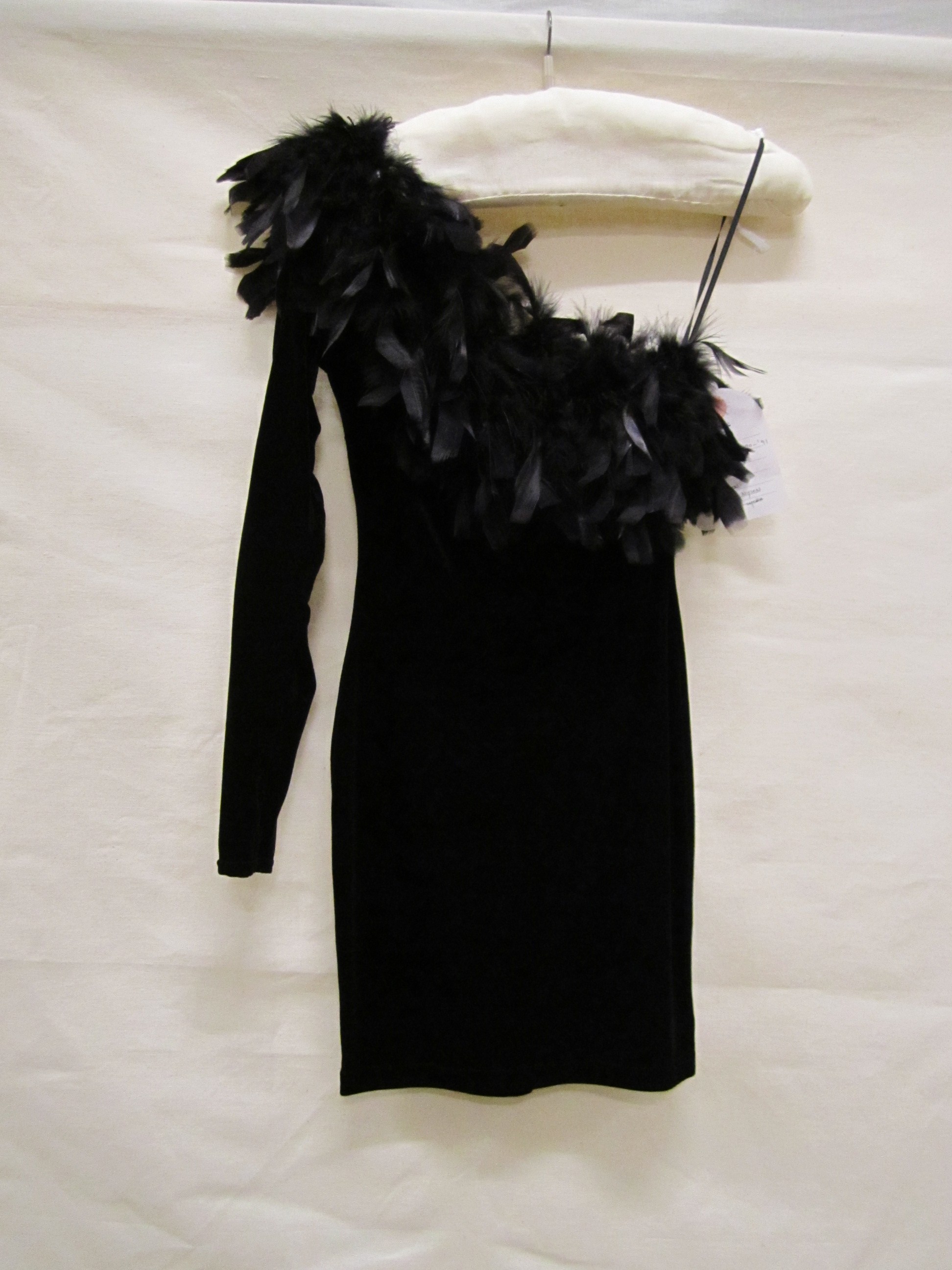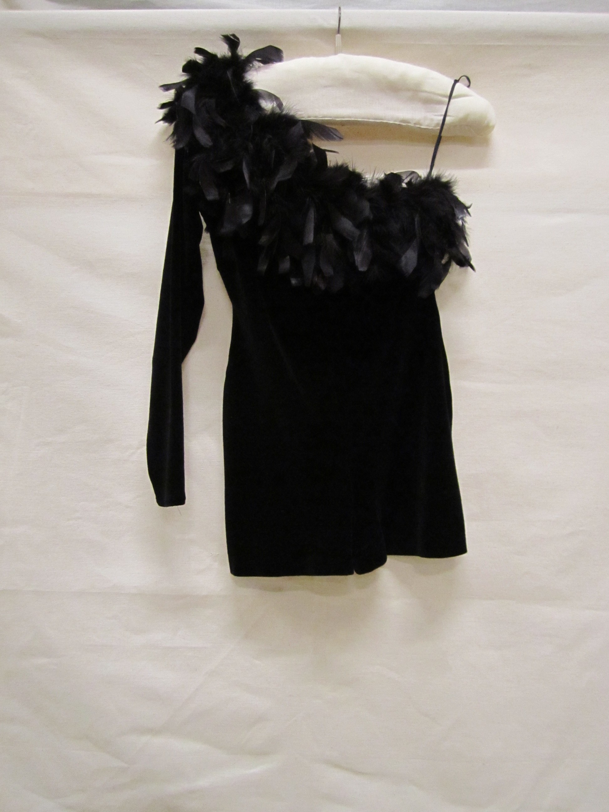 Jurk van zwart fluweel met één bijbehorende handscho...