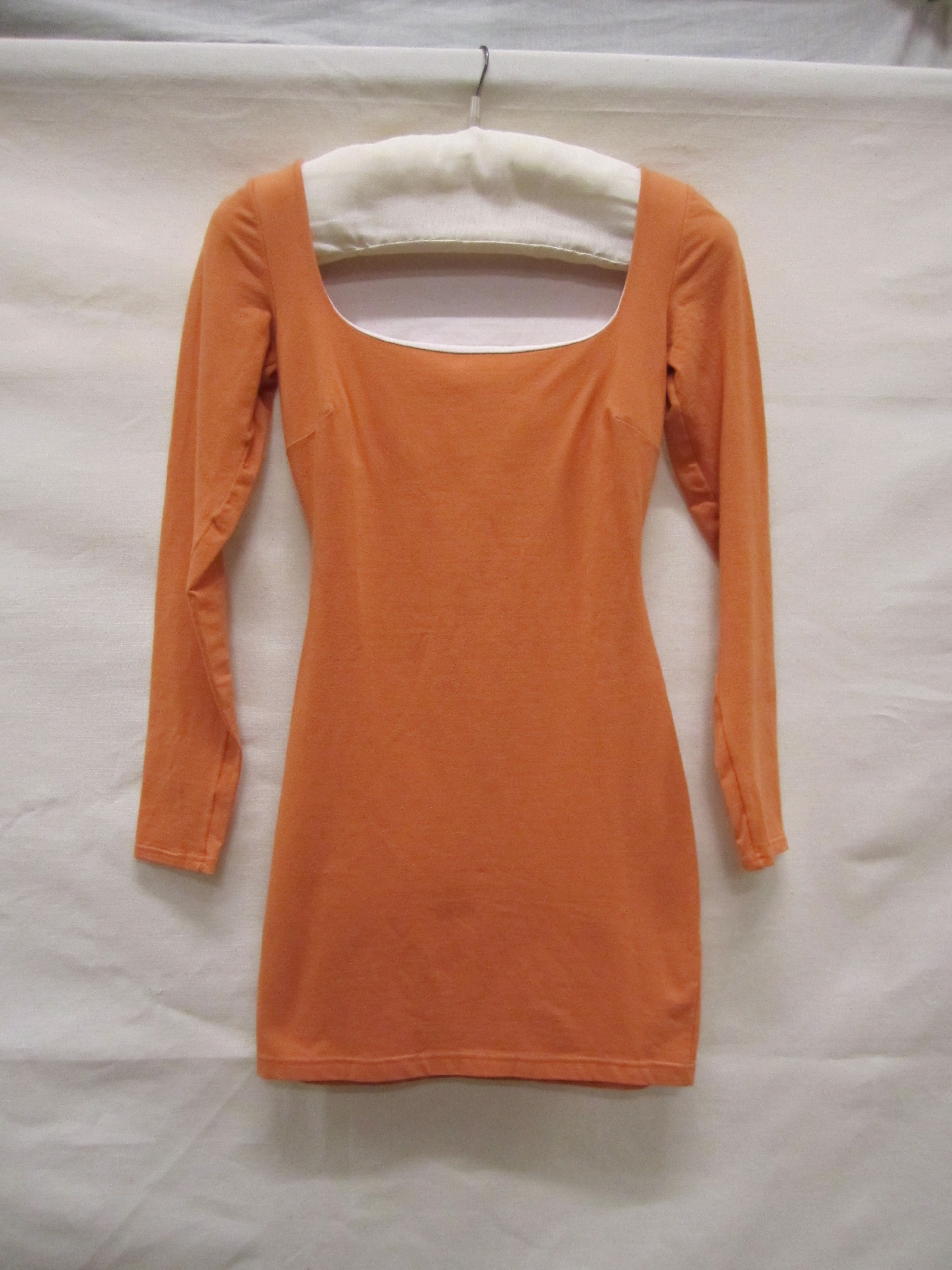 Mini-jurk van oranje tricot. Model met lange mouwen ...