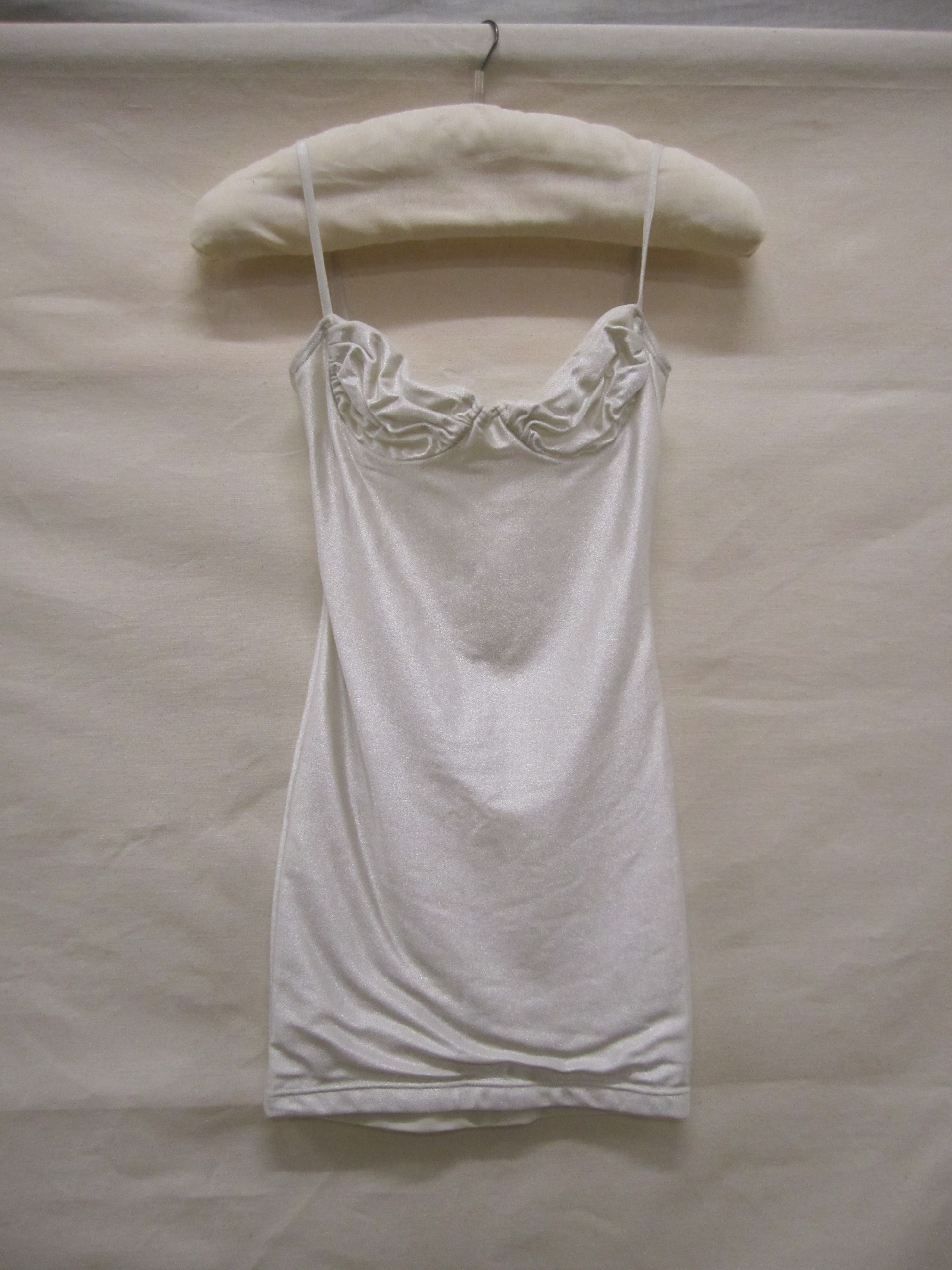 Mini-jurk van witte stof met glimmende zilveren coat...