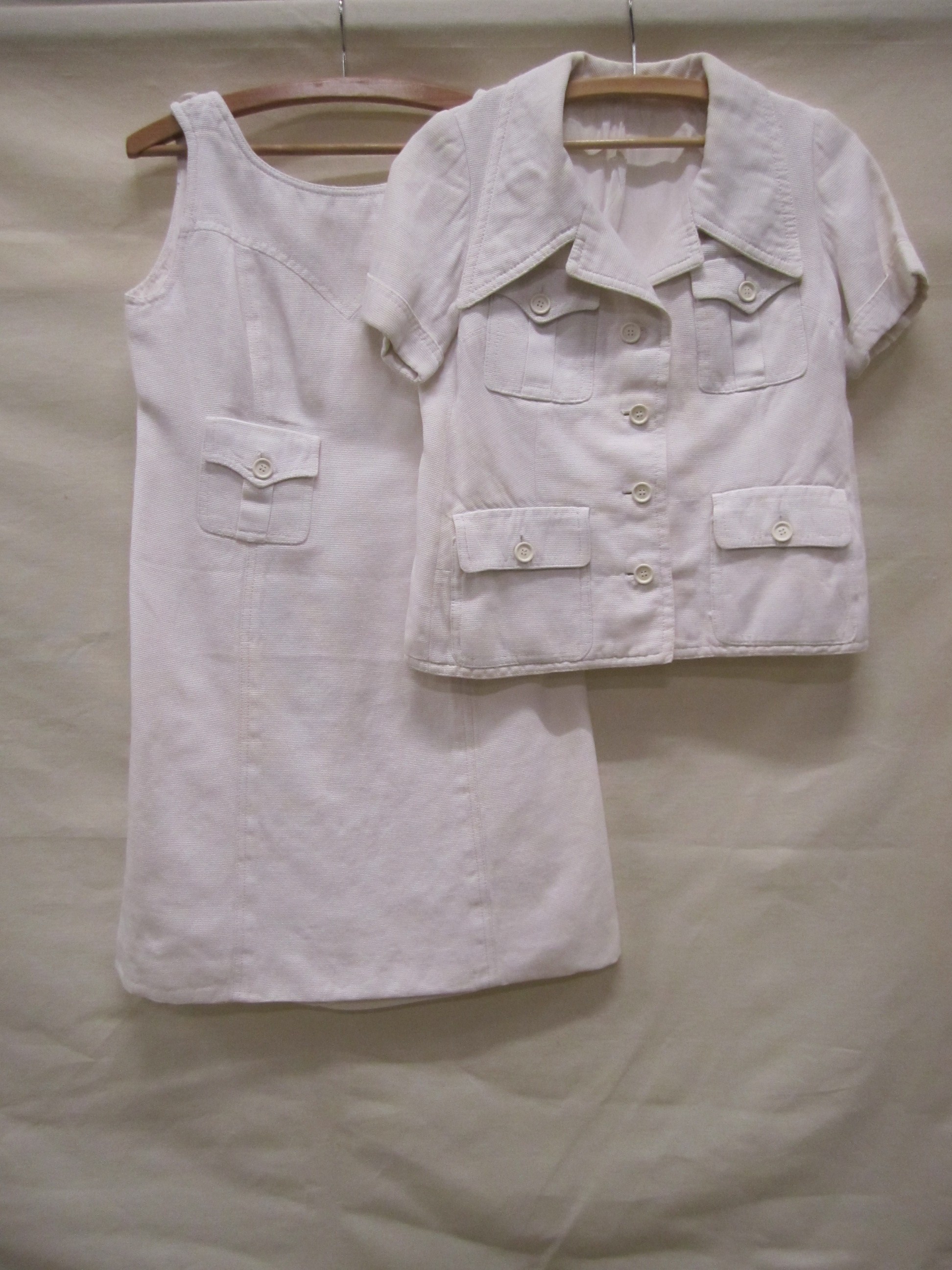 Ensemble bestaande uit tuniek, rok en 2 ceintuurs va...
