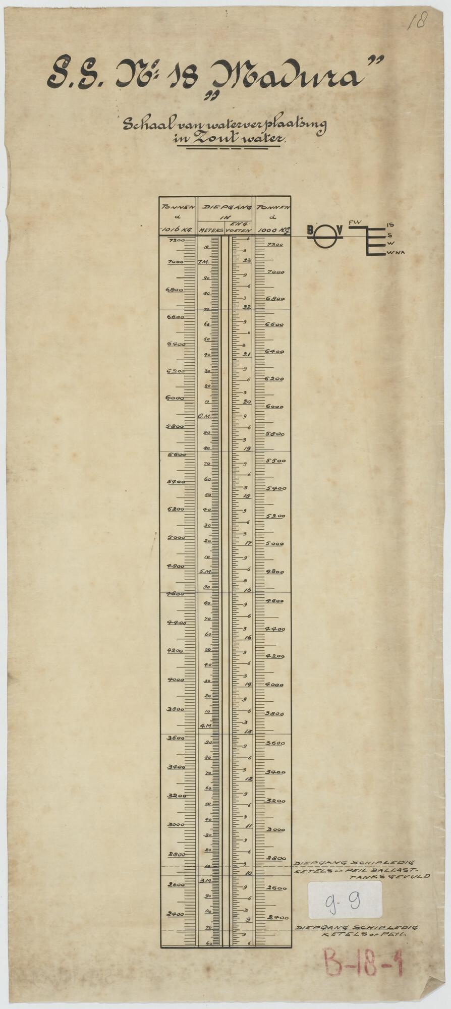 Lijnenplan van het vrachtschip ss. Madura