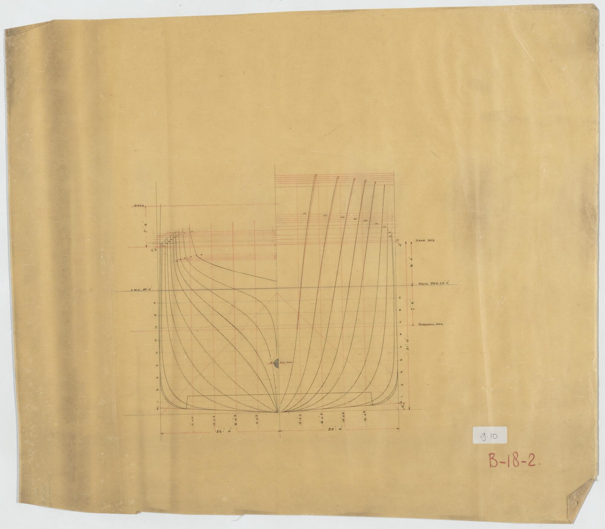 Spantenplan van het vracht- en passagiersschip Van d...