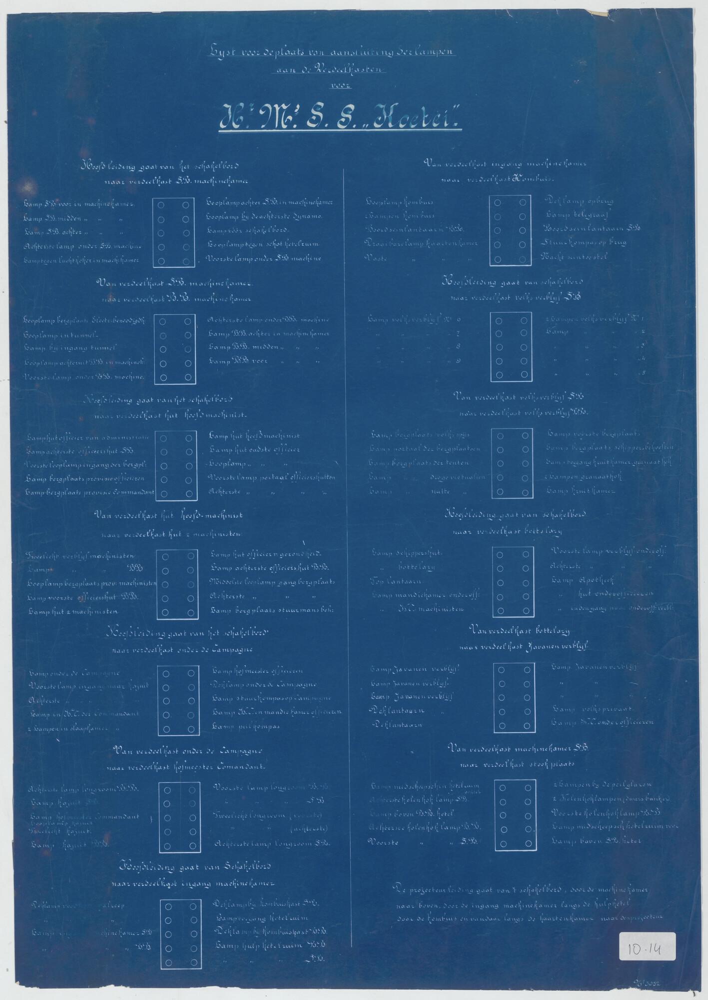 Lijst voor de plaatsing van lampen van het flottielj...