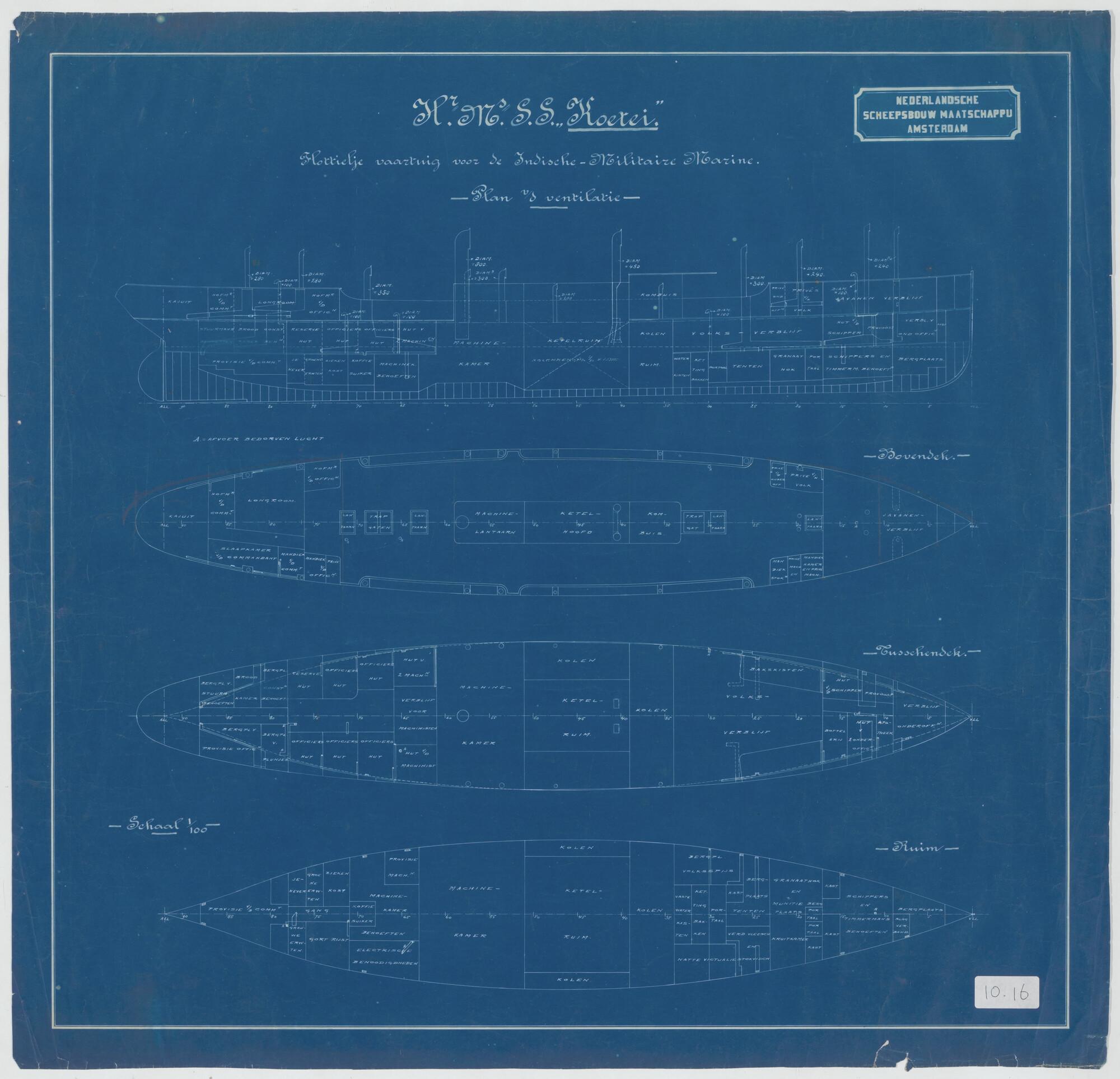 Plan voor de ventilatie van het flottieljevaartuig H...