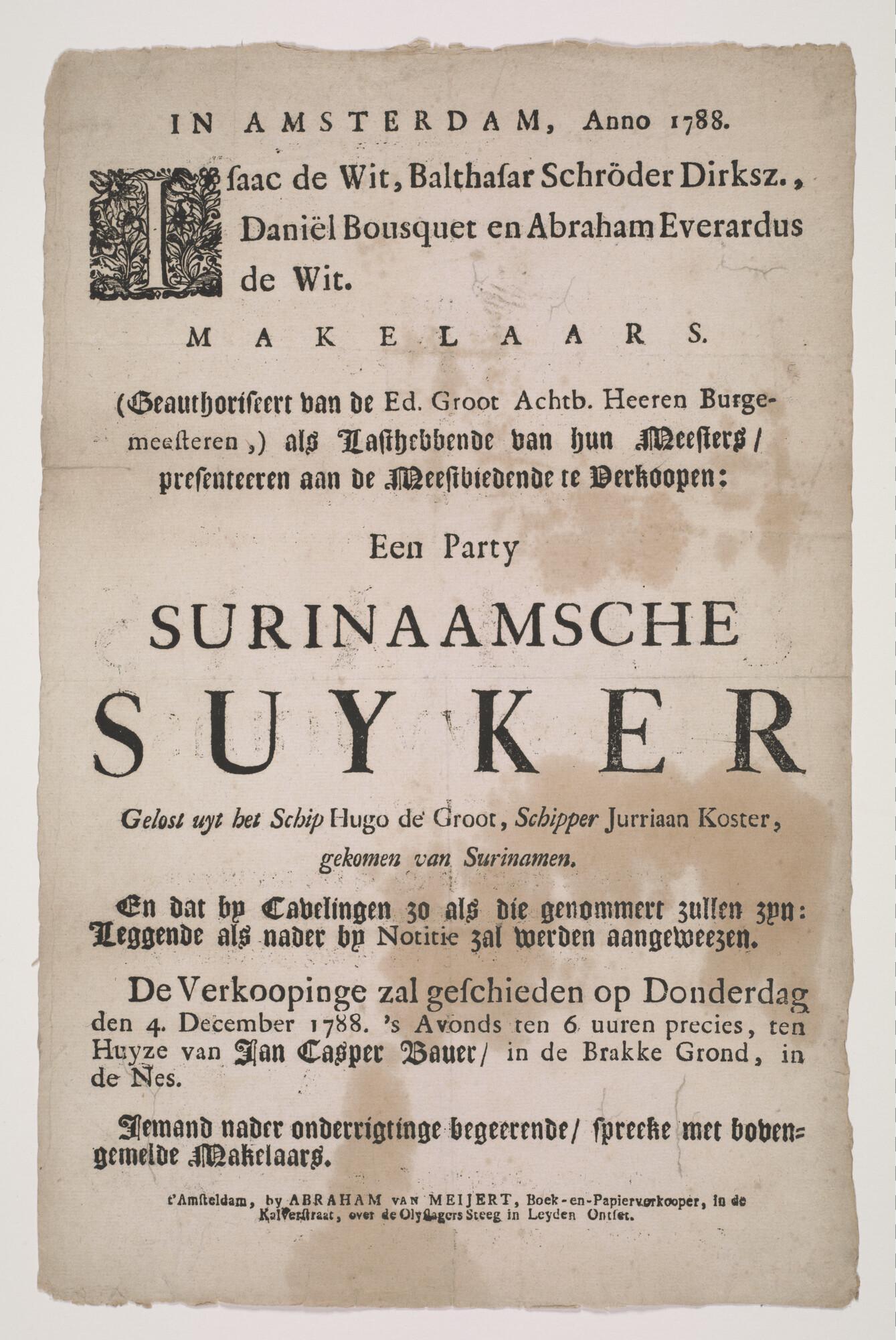 Verkoopbiljet voor Surinaamse suiker