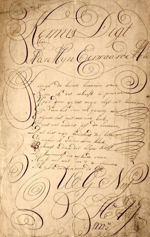 Versen in schoonschrift van Adriaan Jan Coevenhoven