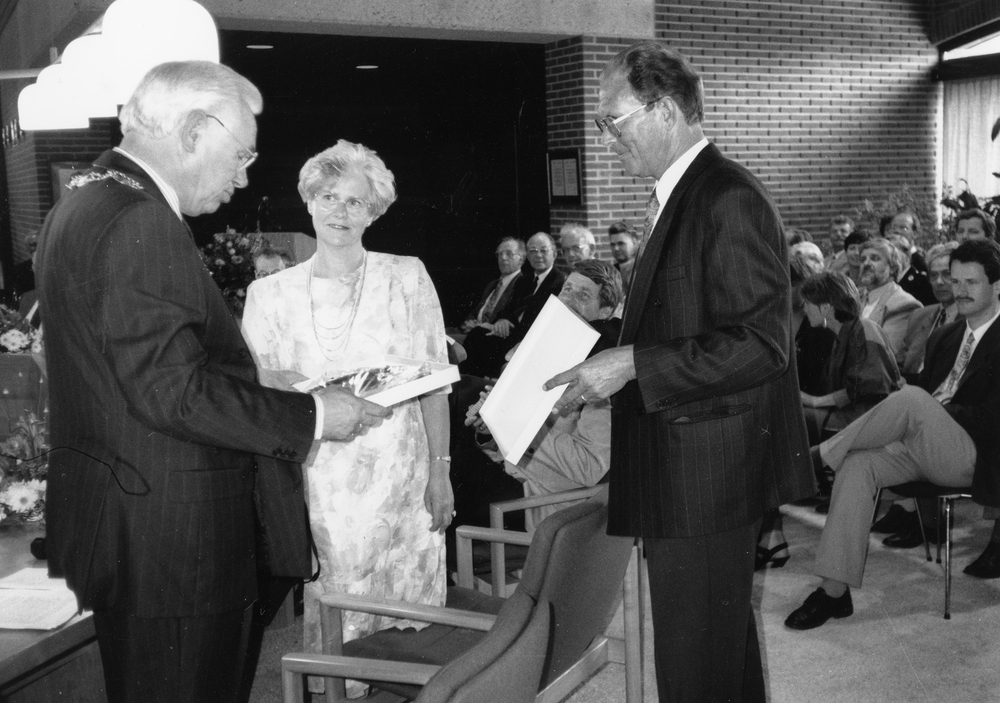 Burgemeester Van Boeijen ontvangt wandbord bij afscheid