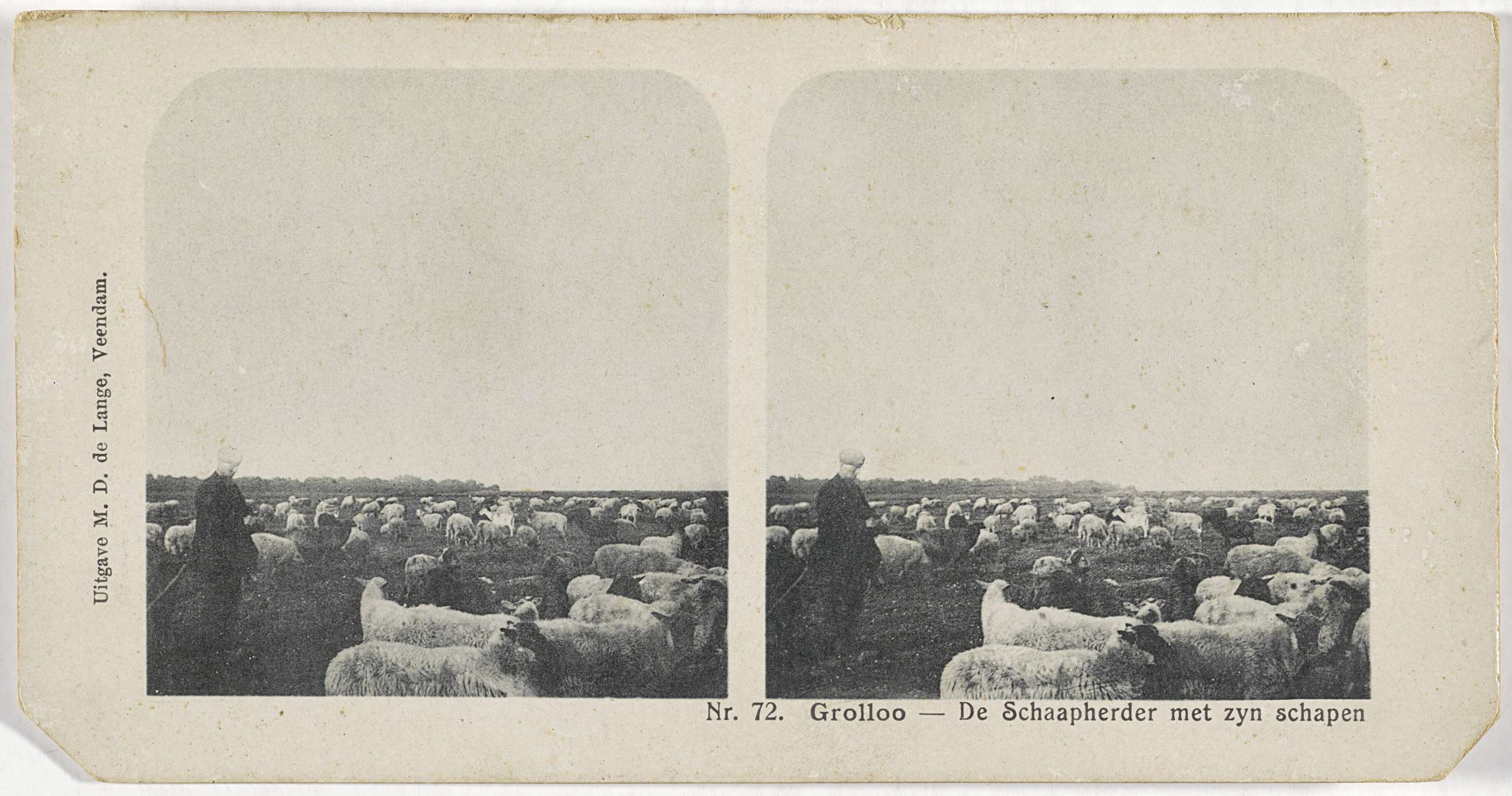 Herder met zijn kudde schapen in Grolloo