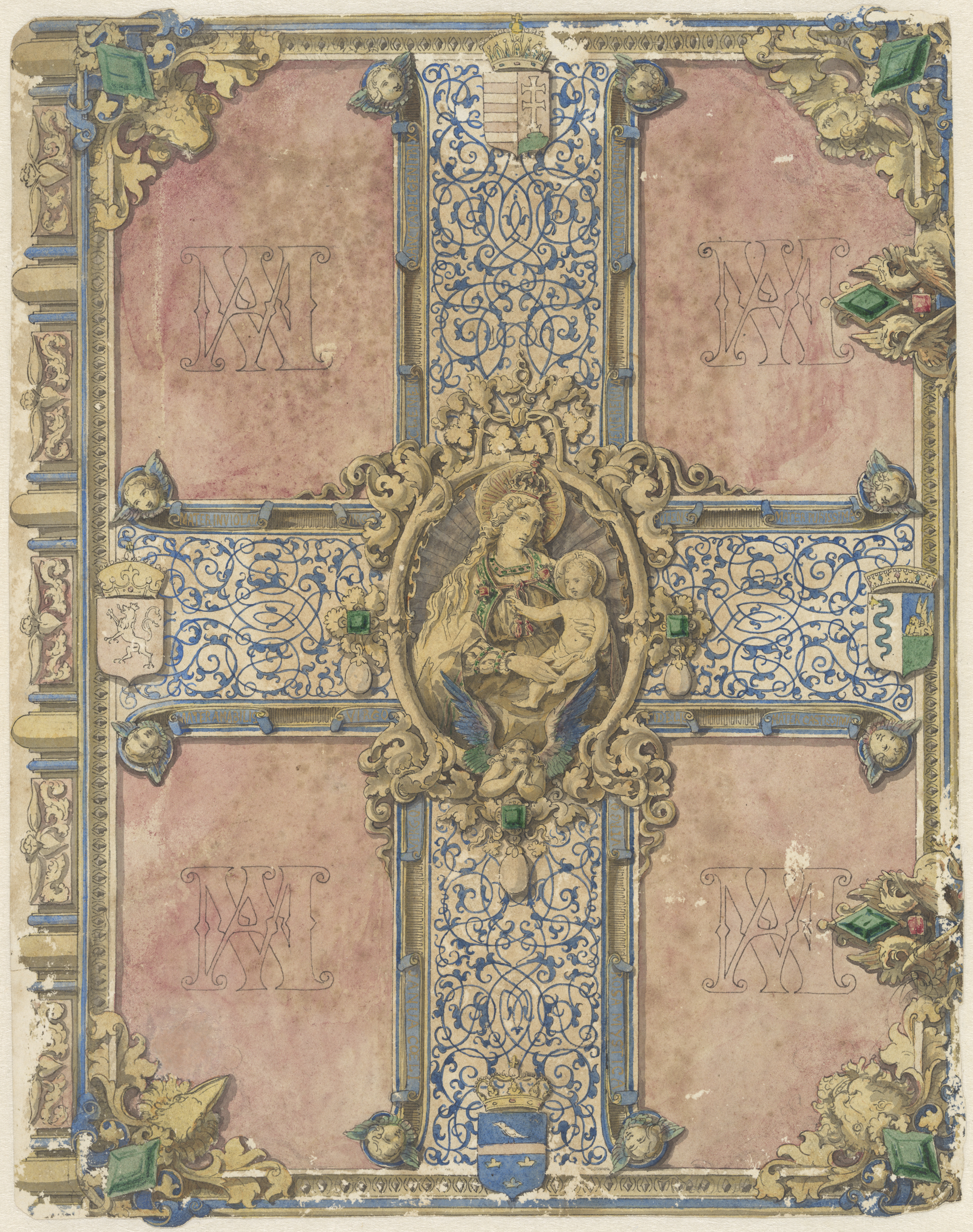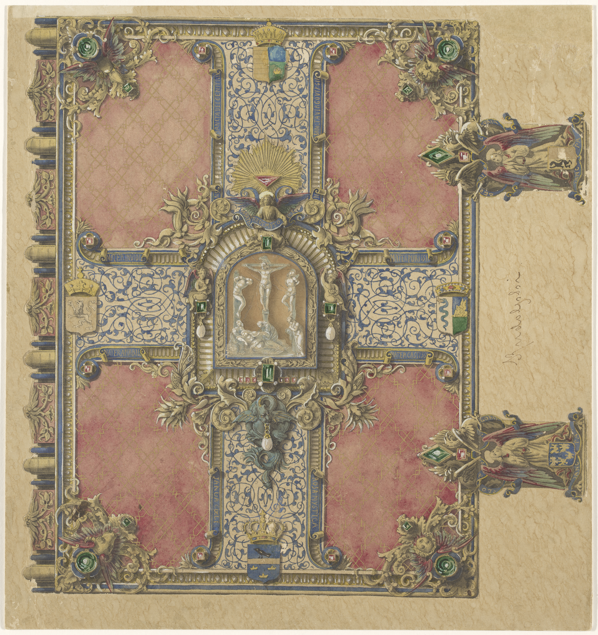 Ontwerp voor een met edelstenen bezette boekband