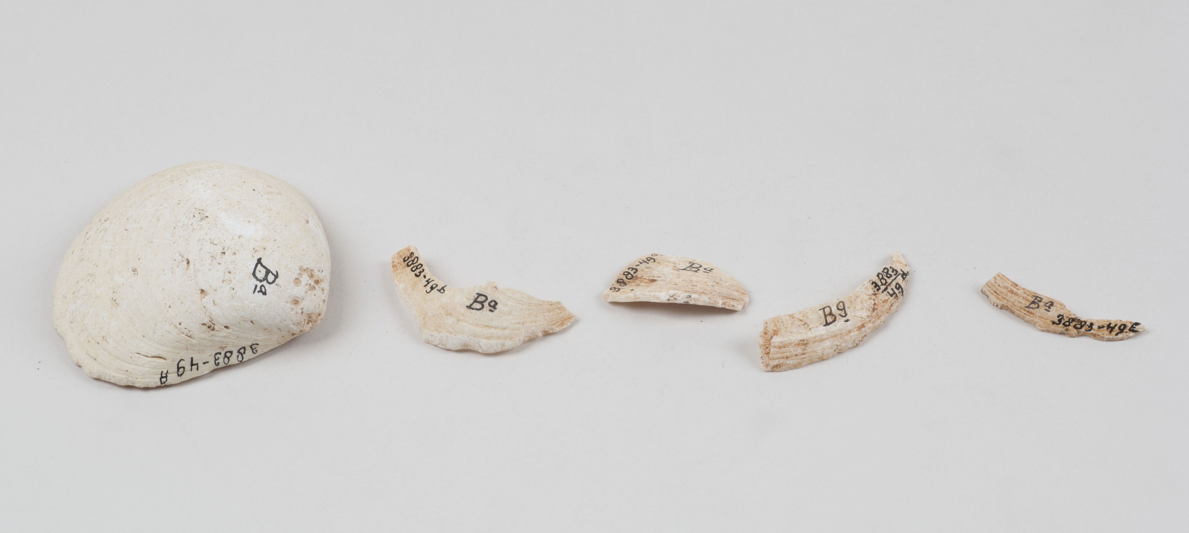 Schelp fragment (a) van (schelp fragmenten a b en c)