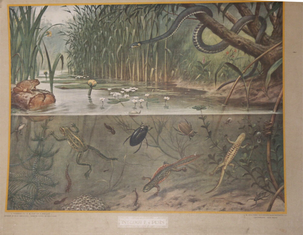 Schoolkaart "In sloot en plas" meerkleurendruk op pa...