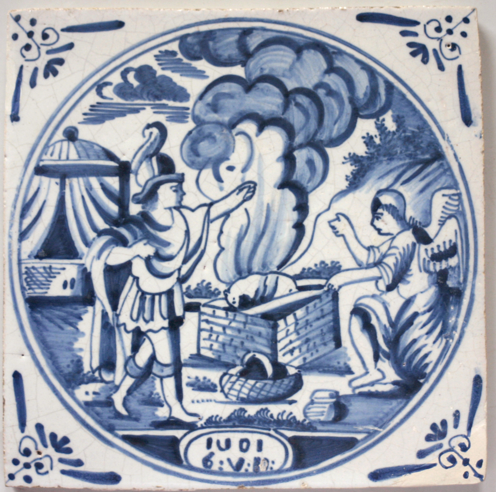 tegel van keramiek met tinglazuur, voorstellende: Gi...