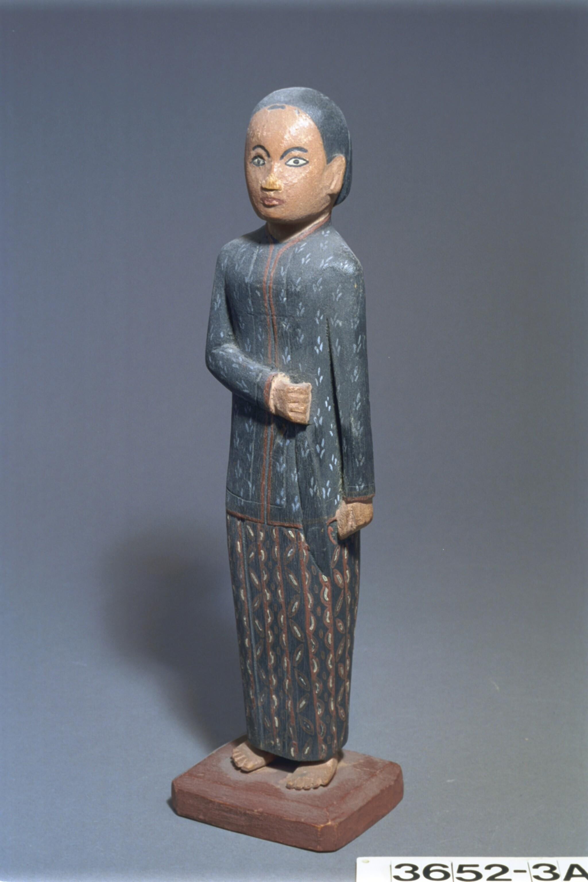 Beschilderd houten beeld van een Javaanse vrouw, ond...