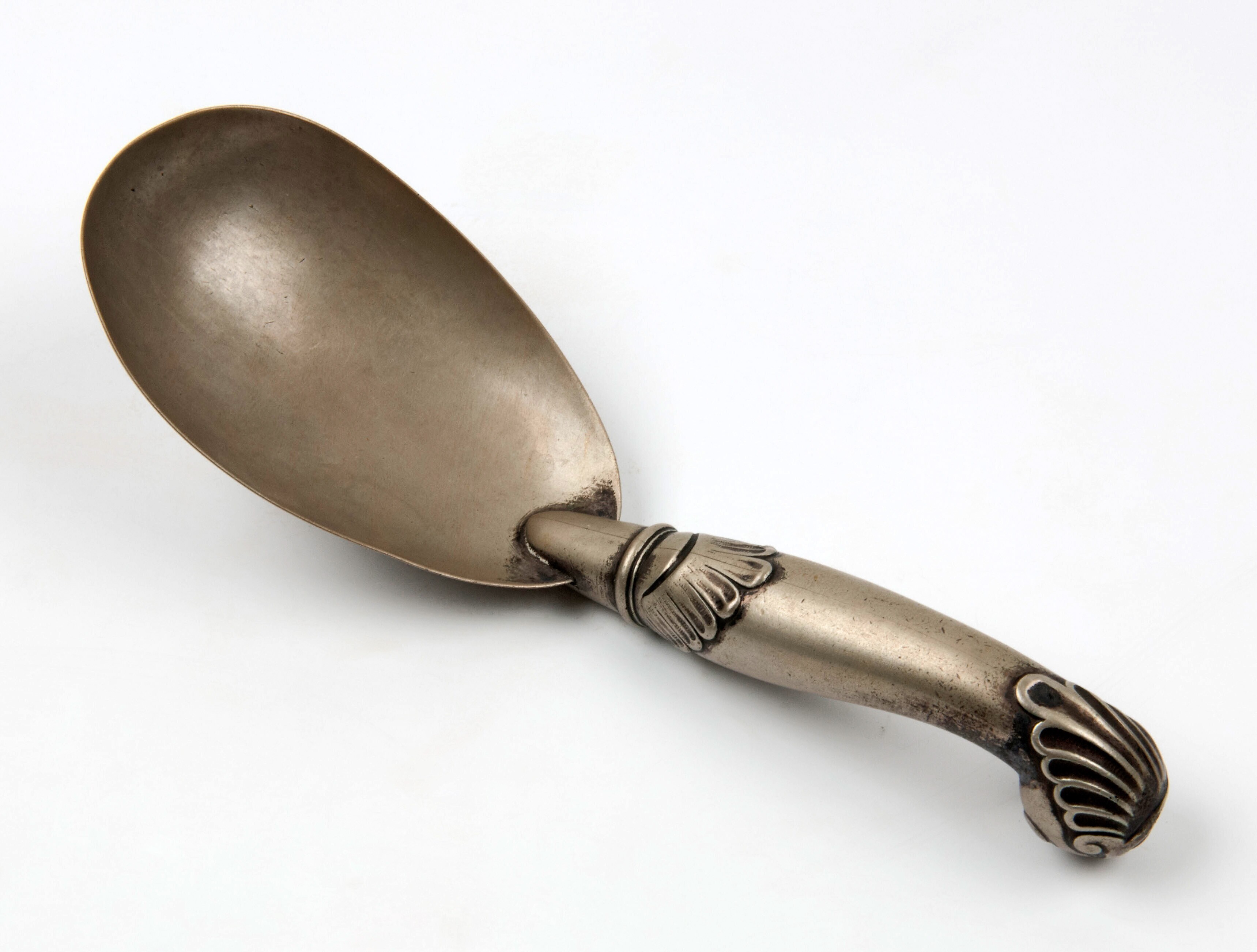 Tinnen rijstlepel met eivormige schep