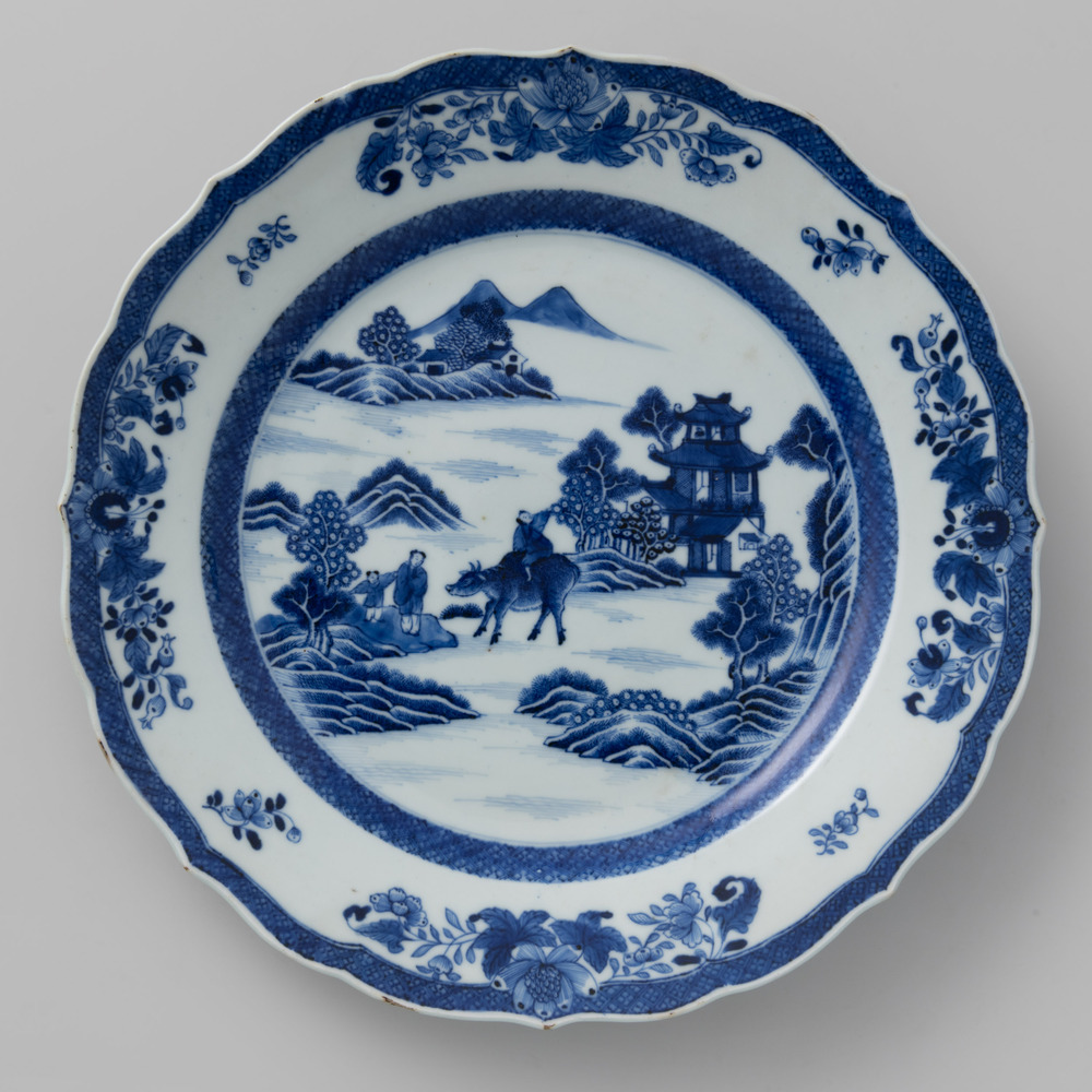Rond bord behorende tot een Chinees, blauw eetservies