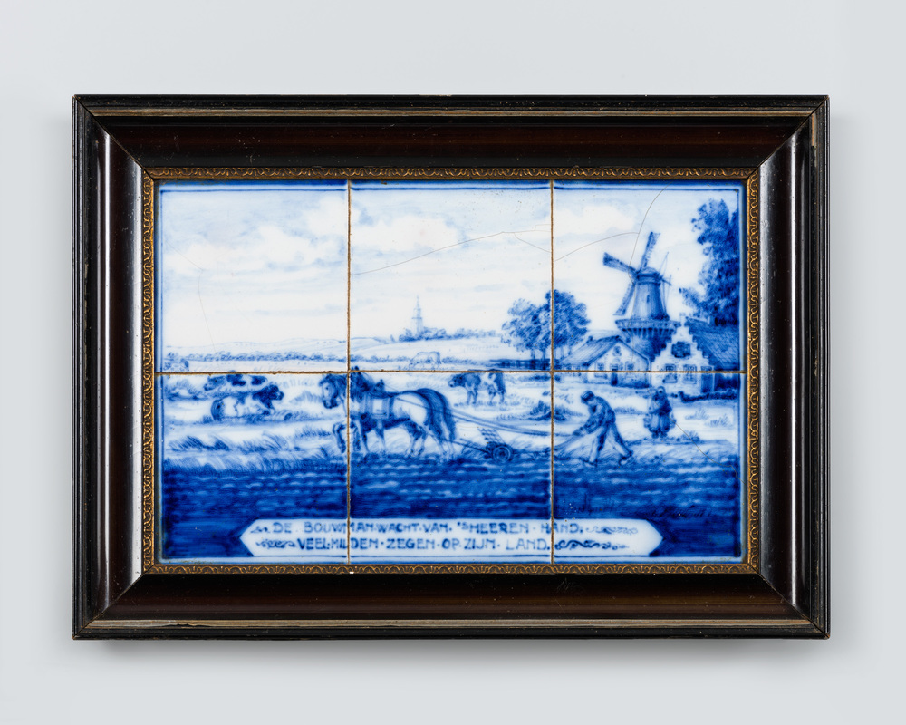 Tegeltableau van keramiek met tinglazuur, voorstelle...