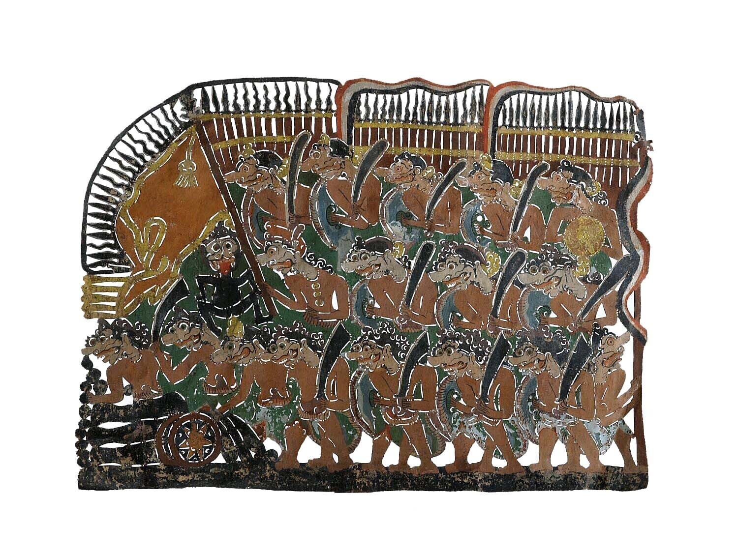 Wajangfiguur, voorstellende een wagen met twee paarden