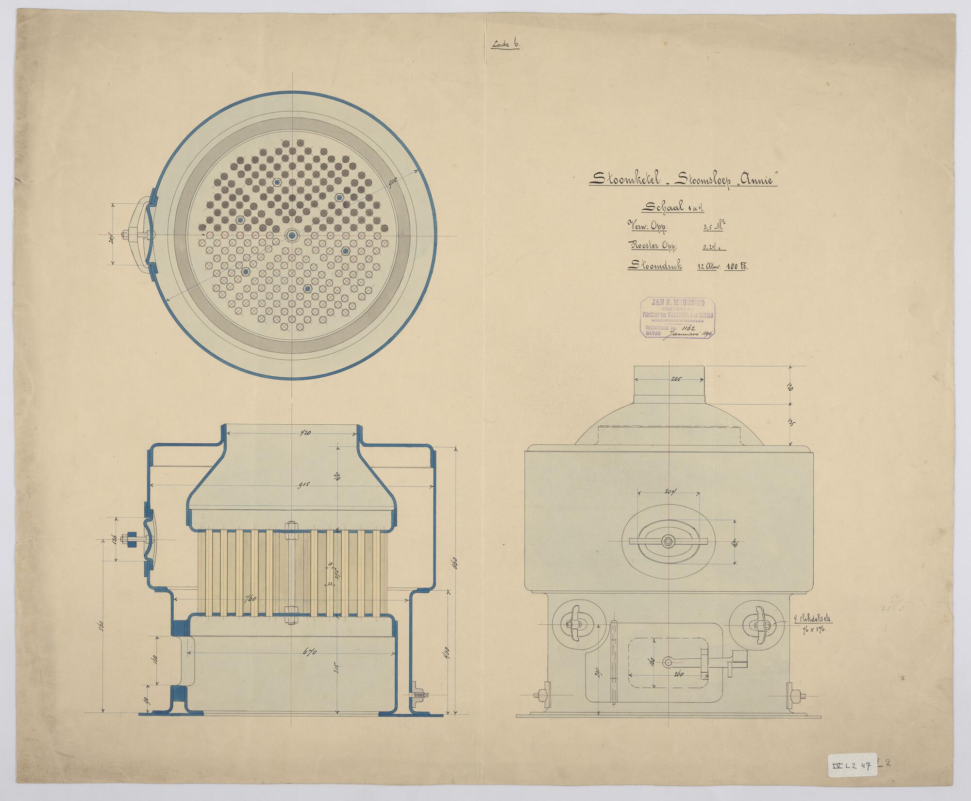 Ontwerp Schotse ketel, 1897. 12 Atm van de stoomsloe...
