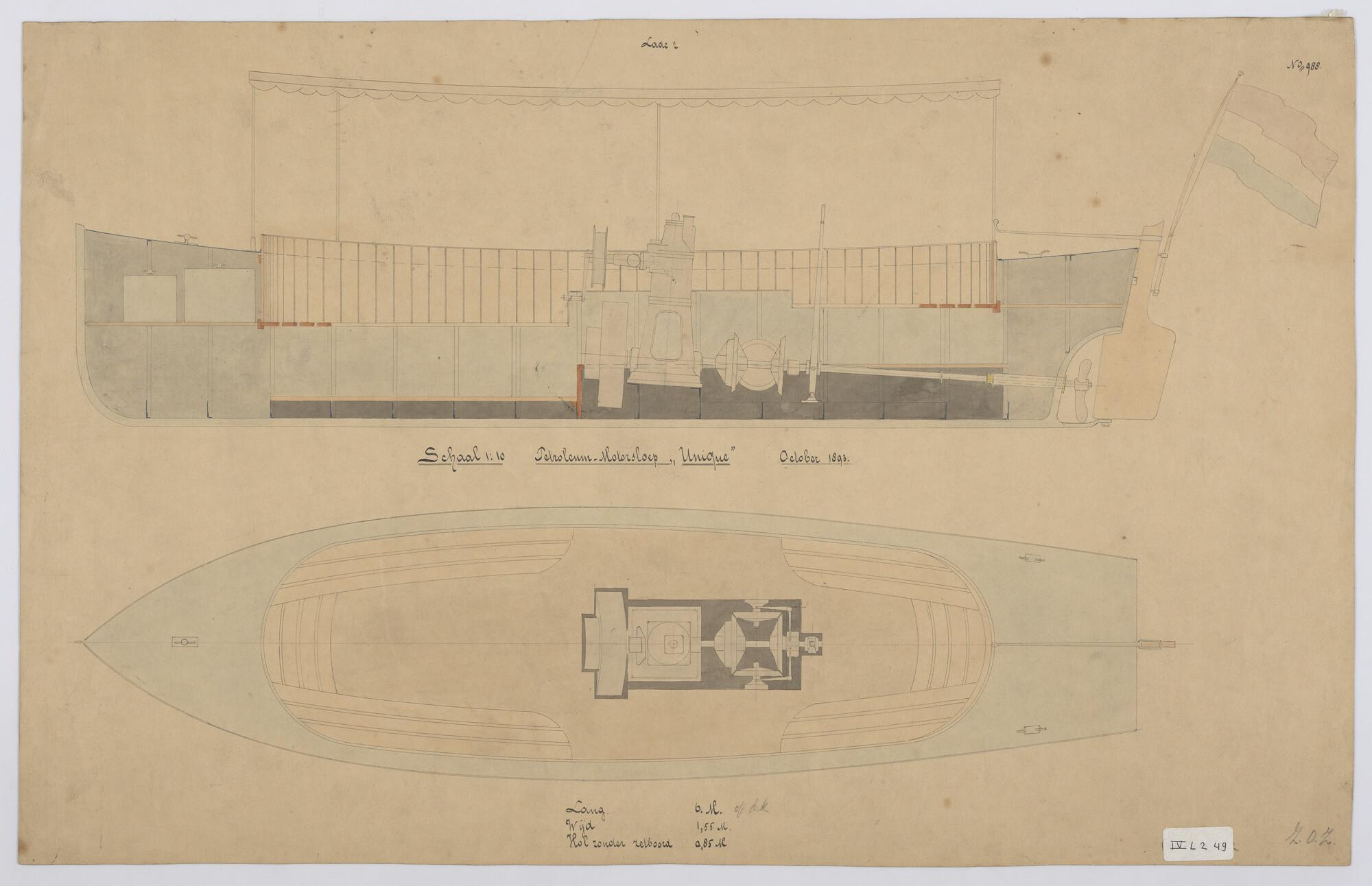 Zijaanzicht en bovenaanzicht, Havenbootje (Amsterdam...