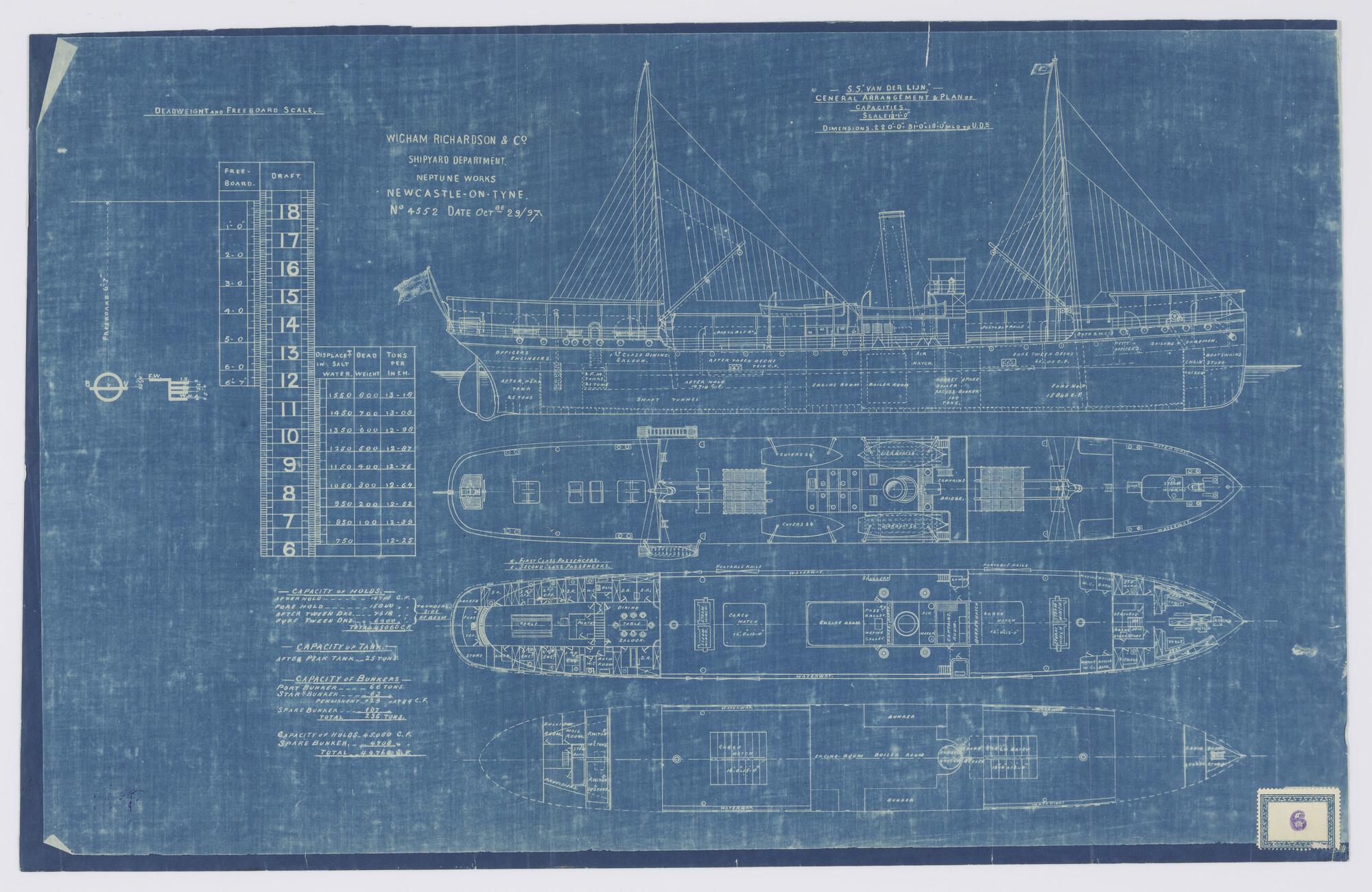 Lijnenplan en spantenraam van een stoomschip, 1894