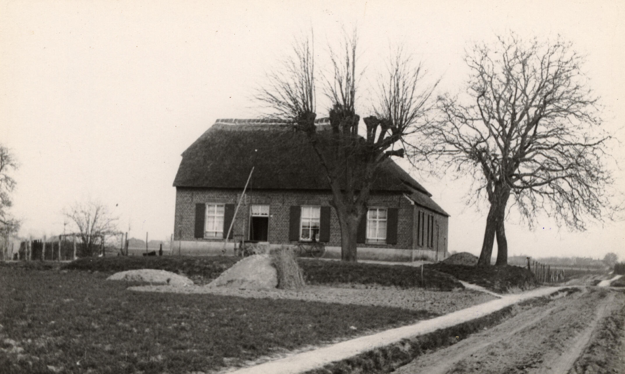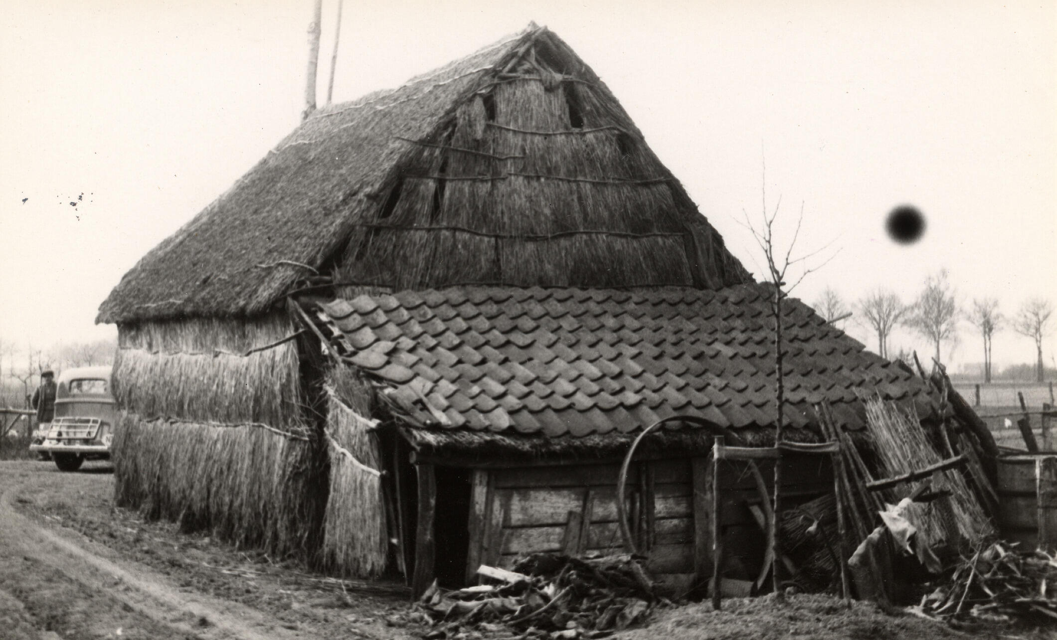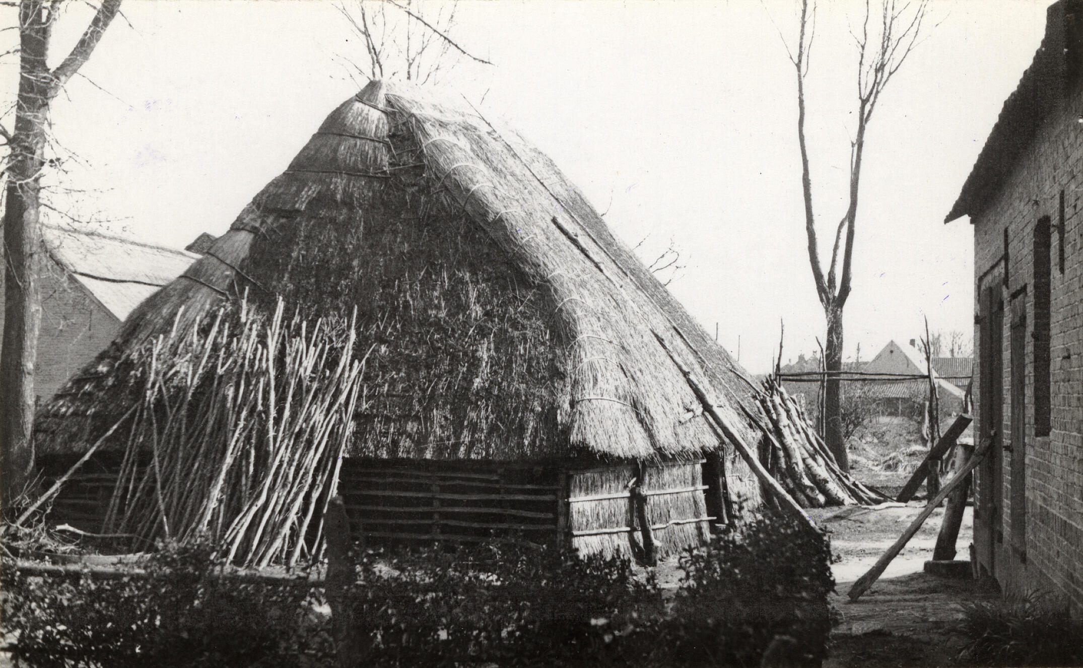Schuur met strowanden, Beers, 1936 (zwart-wit foto)