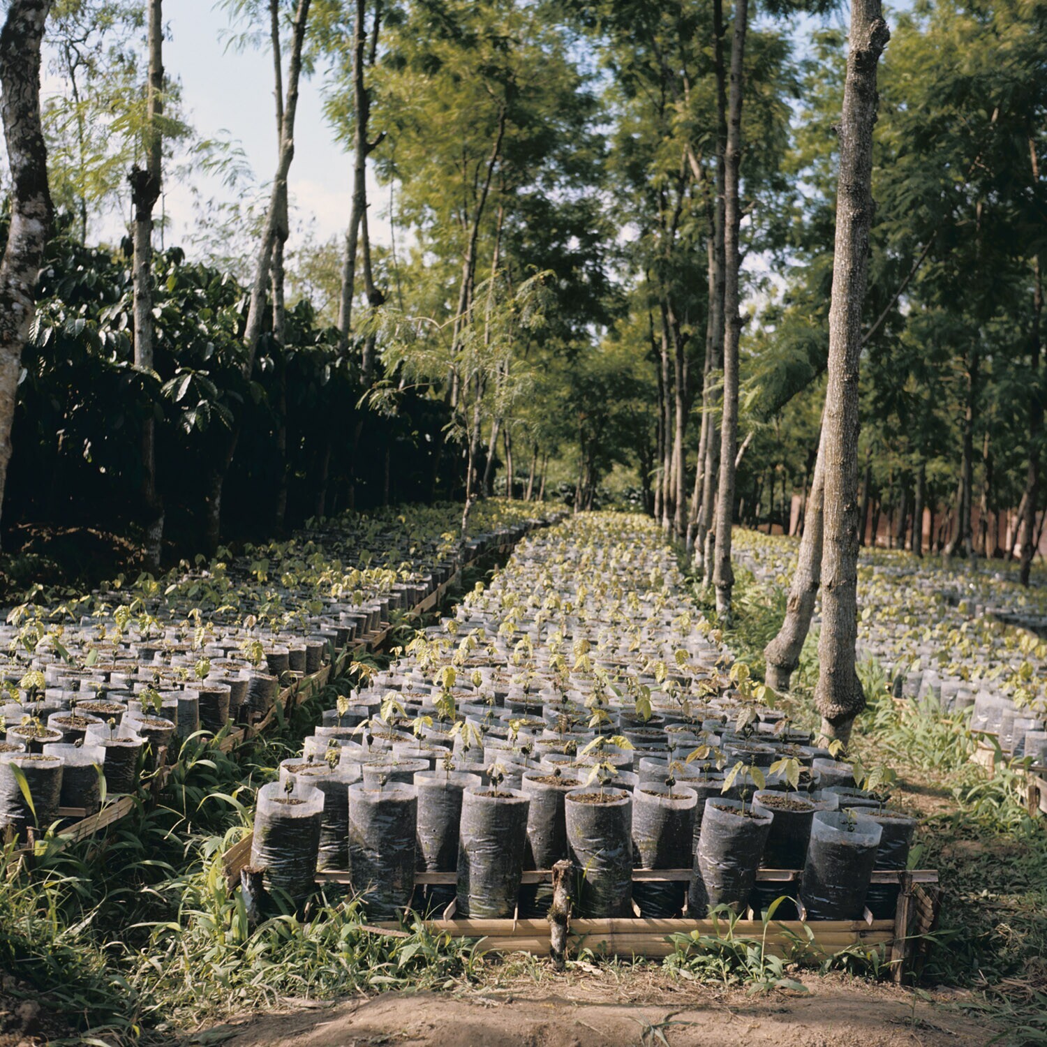 Jonge koffieplanten. Koffie en caçao-onderneming 'Ma...