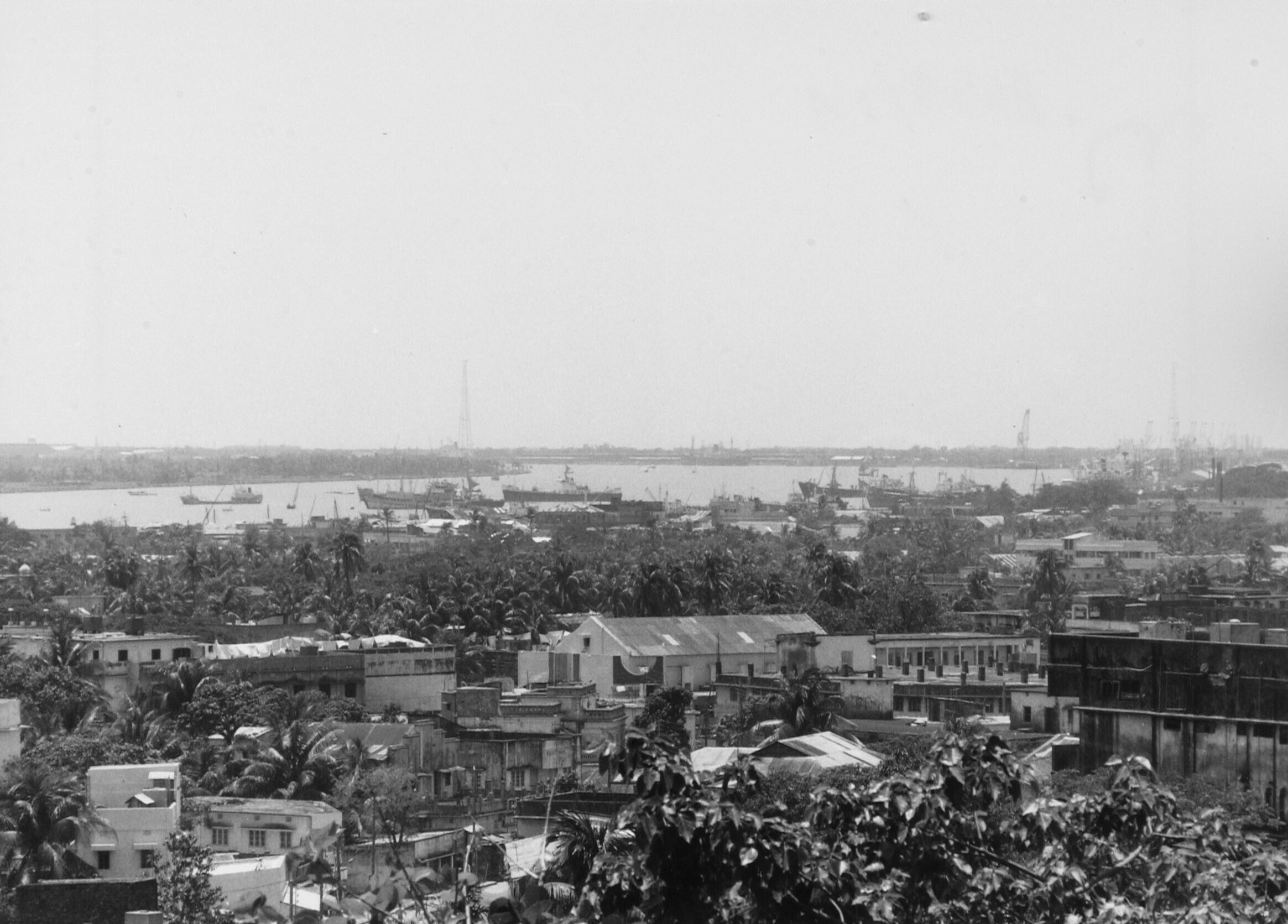 Uitzicht over de stad en haven aan de Karnaphuli-rivier