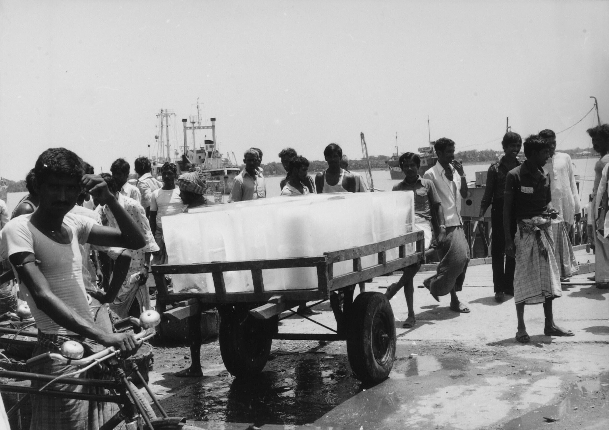 Aanvoer van ijs in de haven