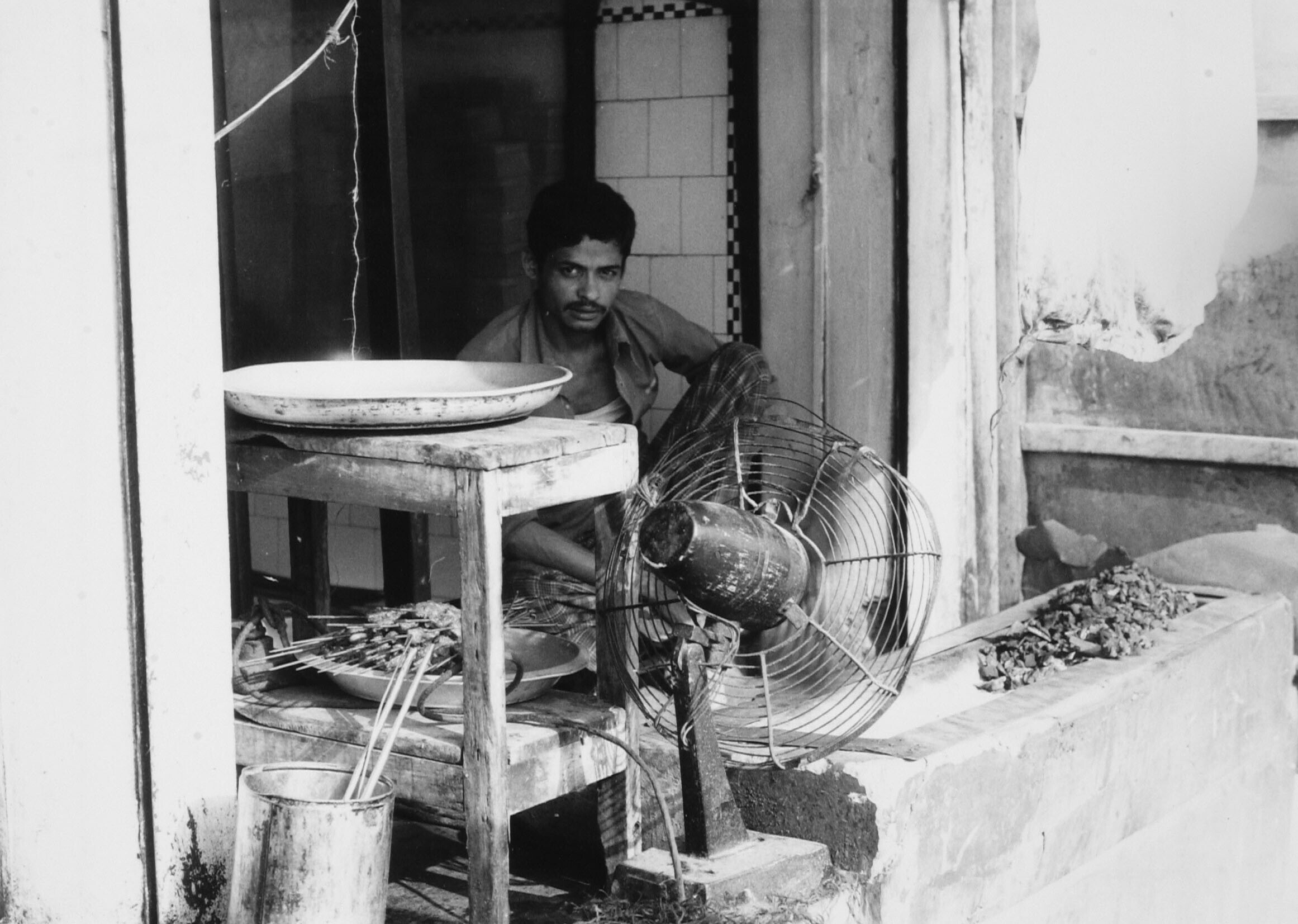 Eethuisje op Mirpur Road, verkoop van vleesspiesjes,...