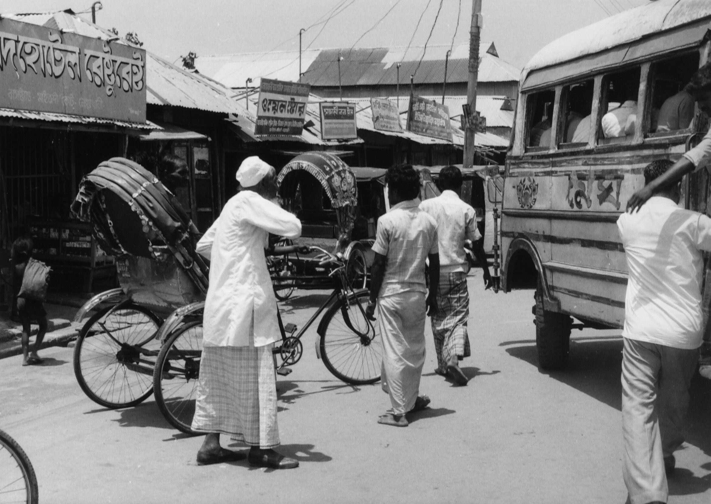 Groente- en fruitmarkt aan de Mirpur Road, de man me...