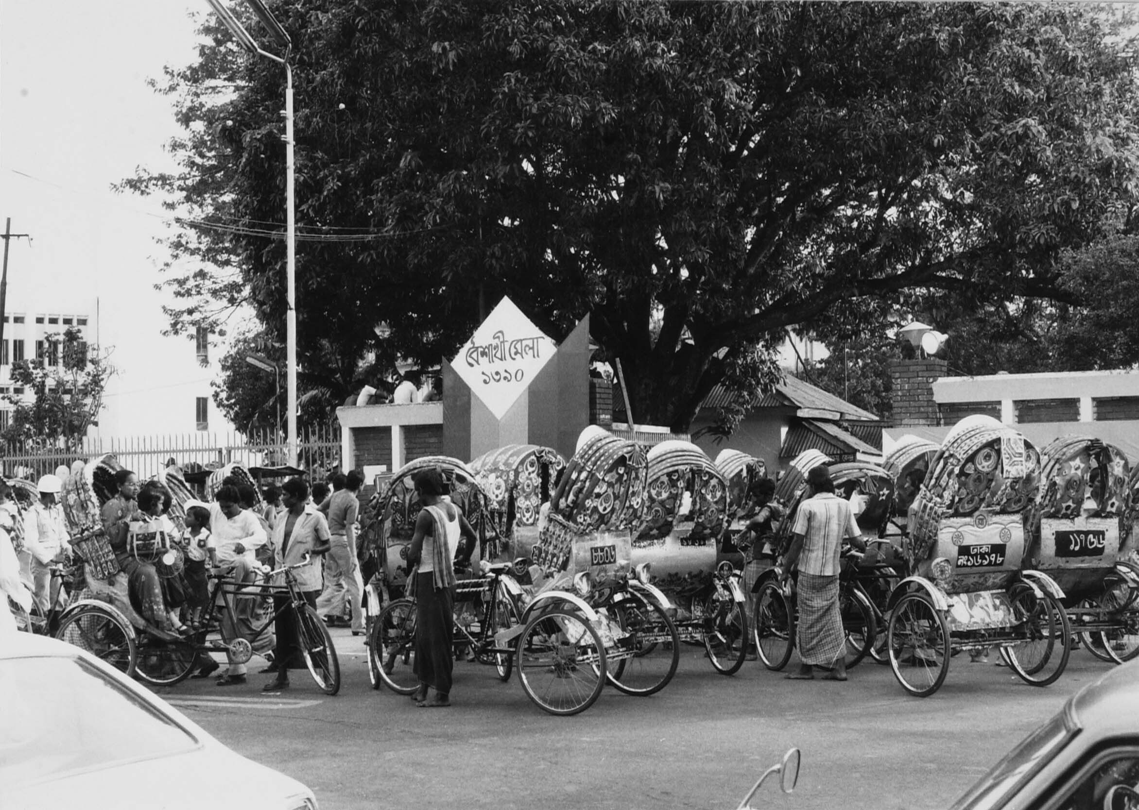 Verkeersdrukte voor de Bangla Academy op Bangla Nieu...