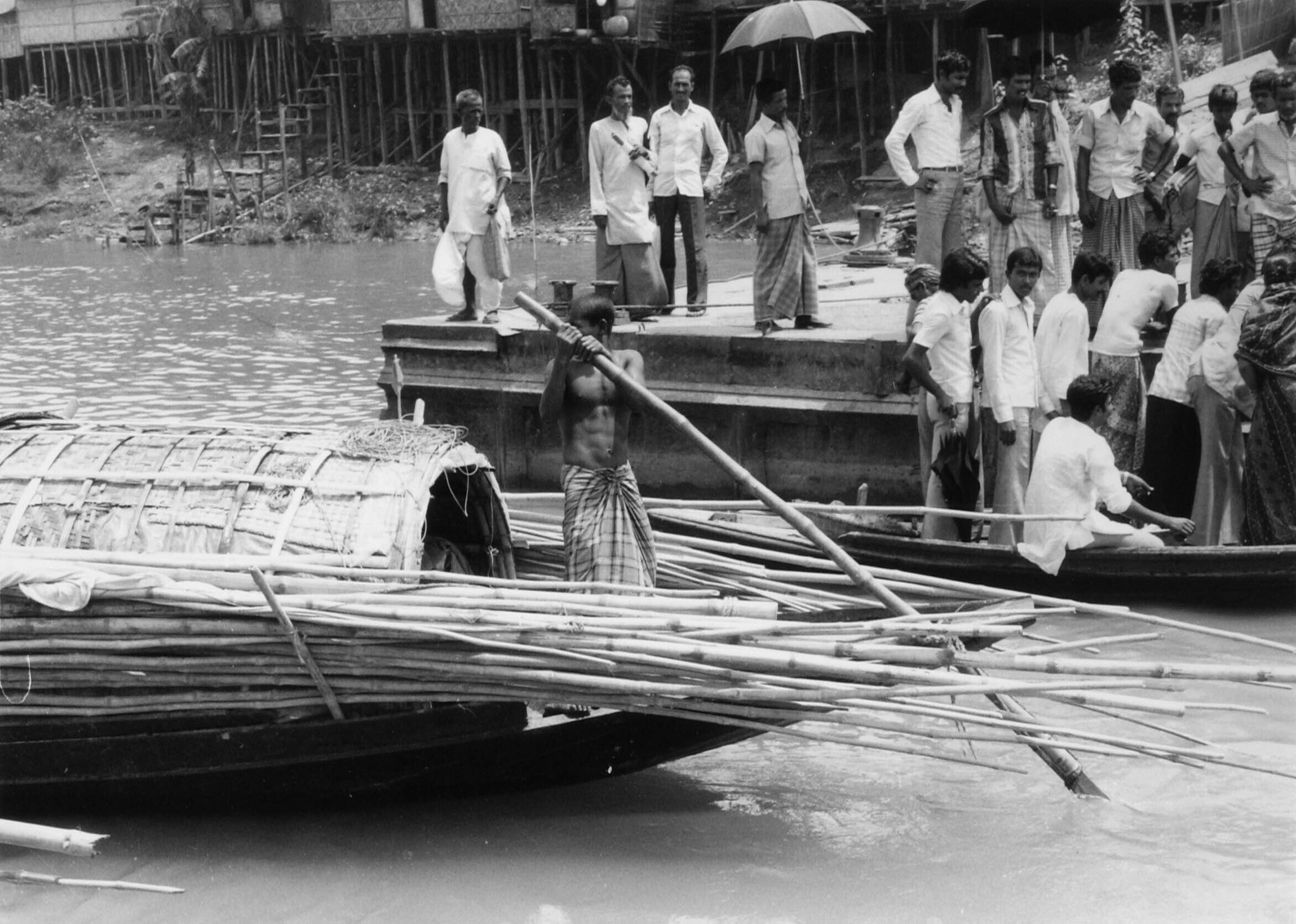 Jute-boten aan de kade bij de Adamjee Jute Mills