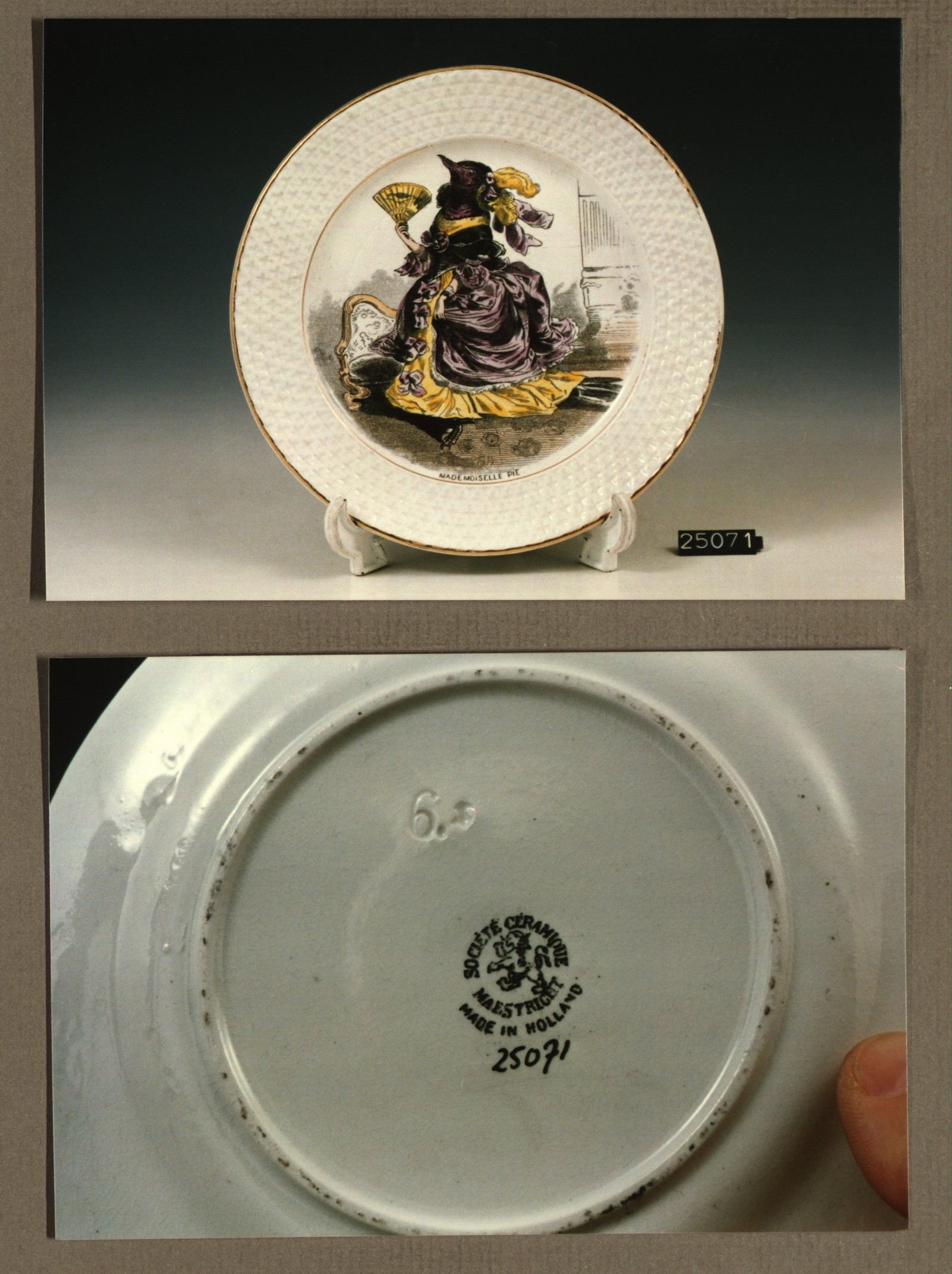 Plat bord, model Sterrand met decor Caricaturen nr.6
