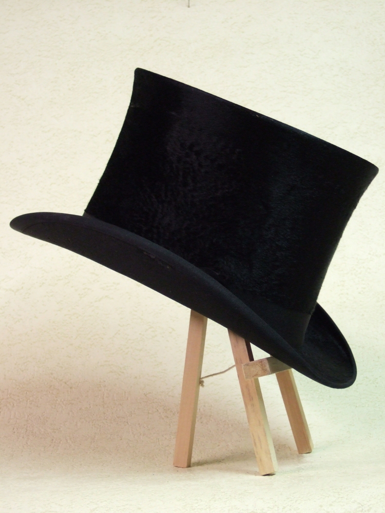 Hoge hoed van zwarte stof, circa 1900